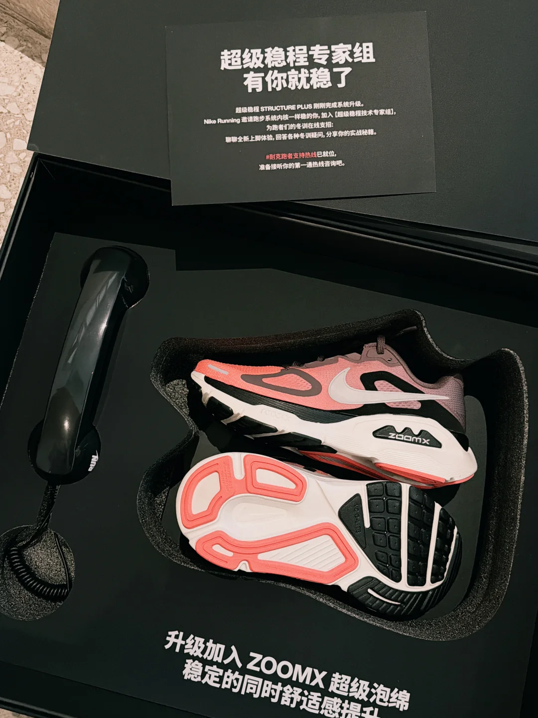 【耐克跑者支持热线】通话中... 🤸🏻本人:喂?教练吗?有没有那种能让我这样的脚踝极不稳定“尥蹶子”选手,冬训不摔个狗吃屎,跑长距离脚不乱晃,还要软弹轻盈的鞋?(要求是不是有点多...👉👈) 🏃‍♀️耐克:安排! 作为一名“乱跑流”选手,冬天的跑道总是不太友好,低温让肌肉僵硬,偶尔湿滑的路面也让人不敢贸然加速。以前听到支撑系跑鞋,脑子里就是:硬、沉,像穿了两块砖!周末参加耐克超级稳程系列的新鞋发布会,近距离围观产品专家拆解将在「2月5日」市售的这双Structure Plus黑科技。 💡这鞋到底有啥“超能力”? 1️⃣心是软的,但皮是硬的(划掉,是稳的[暗中观察R]):Nike应该是第一次把ZoomX这种超级材料塞进支撑系跑鞋里。脚感像是你的脚底踩着一块Q弹的棉花糖(ZoomX),但这块棉花糖被装在一个很稳固的盘子(ReactX)里。 跑起来既有回弹感,落地时又很稳,足外翻十分友好。 2️⃣ 专治“冬训综合症” :冬天跑步最怕啥? 怕冷!这双鞋加厚的鞋舌和领口,像给脚穿了件羽绒背心,暖呼呼的。 3️⃣ 既要又要:超级稳程对比稳程系列,有了全方位的体验升级。更轻(女款轻了约12g)、更弹、很适合长距离支撑需求。 🧪实测场景: 北京-7℃,干爽公园硬路+雪地复杂路面(6分配)。硬地表现不用多说,不辜负“超级稳定,缓震在线”的核心亮点。更靠谱的是湿滑路段的安全感,特意提前拉紧鞋带,整套中足束带系统像安全带一样,在每一次小心翼翼触地时都把脚尽量修正到正确的位置,防止极限打滑。 接下来还要再感受下20km以上LSD的体验,希望Structure Plus是这个冬天最温暖的答案🔥