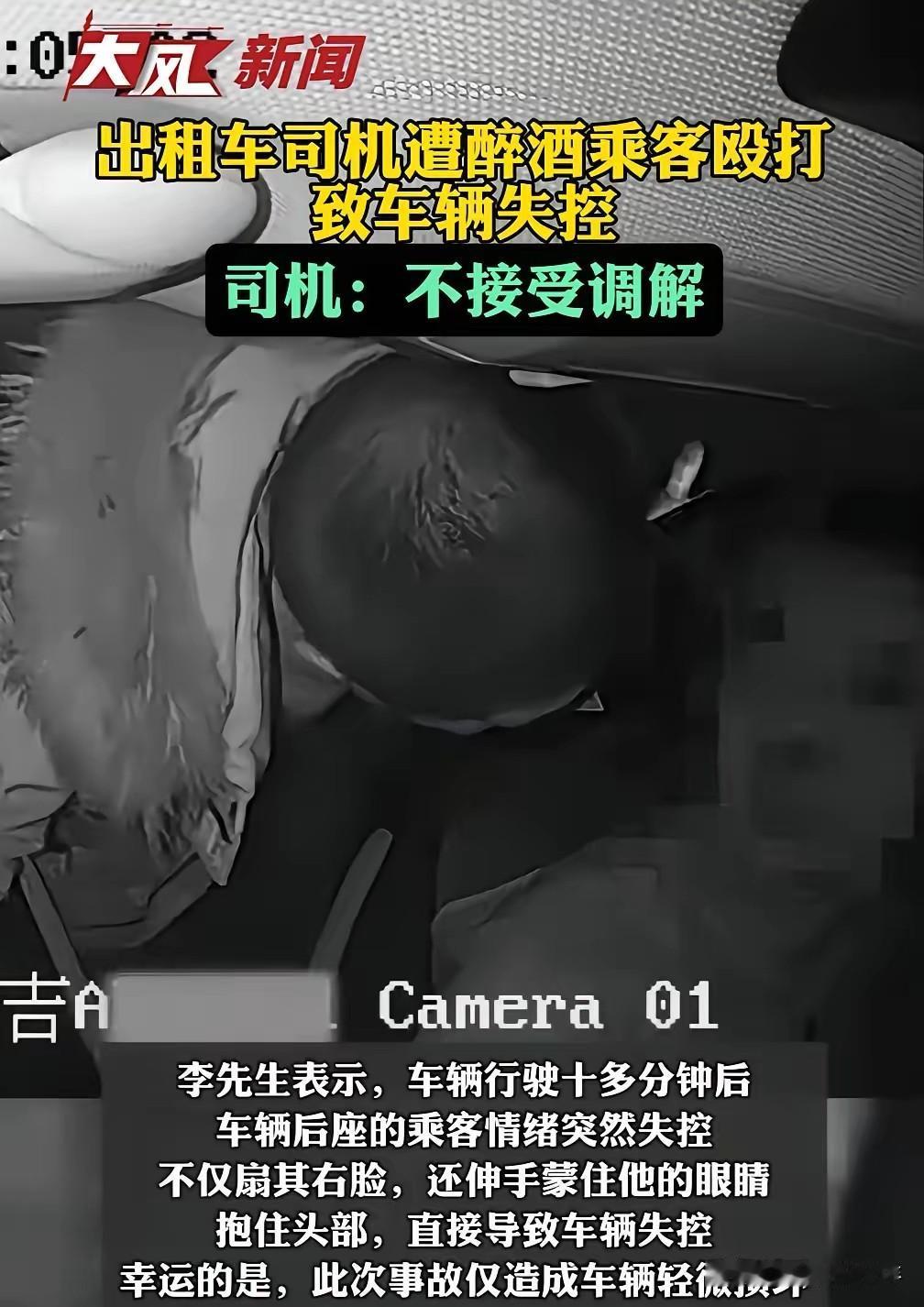 吉林长春,一个32岁的出租车司机,大半夜拉了俩喝醉酒的表兄弟。这俩人在车上吵起来,后座那个突然就把火撒到司机身上,“啪”就扇了司机一耳光,还伸手把司机眼睛捂住了,被另一个乘客拉开后,又死死抱住司机的头,结果车直接失控冲进绿化带。好在是后半夜,路上没什么人车,没出大事故。警察来了说要调解,司机说要么赔5万私了,要么就刑事立案。警察说这事儿没到刑事立案的程度,司机直接放话:调解?我绝不接受! 大半夜跑出租的,都是想多挣点辛苦钱。那天司机出门前还想着,跑完这趟就回家补觉,哪知道遇上这档子破事。 那一耳光扇过来,司机当时就懵了。紧接着眼睛被捂住,什么都看不见,他猛踩刹车也没用,车子还是冲了出去。 事后去医院检查,司机被诊断出轻微脑震荡,医生让他在家至少躺一周。这不仅要自己掏钱修车,这几天也没法跑车赚钱,等于两头受损。 司机说要5万赔偿,不是狮子大开口,是把修车钱、耽误干活的损失,还有被吓出的精神损失都算进去了。可对方只愿意出几千块,警察还说这事儿够不上刑事立案,只能私下调解。 司机为啥咬死不接受调解?他说不是为了钱,是为了争口气。这次要是就这么算了,以后指不定还有多少醉汉敢在出租车上撒野,其他司机也得跟着提心吊胆。 出租车司机也是公共服务从业者,在自己车上被人打了,差点闹出人命,结果连刑事立案都立不了,这说明相关法律对这类事的界定太模糊了。 现在对公共交通工具上的暴力行为,没有明确的严惩标准,既伤了司机的心,也让整个行业的安全没了保障。 后半夜的街上,还有好多司机在跑活儿。他们拉着乘客往家赶,自己的安全却没个靠谱的保障。 这事儿不只是司机一个人的委屈,更是整个出租车行业的隐患。相关部门得重视起来,把规则改改,别让从业者寒心。 要是这种事都不严办,只会让那些酒后闹事的人更嚣张,也让更多司机觉得没处说理。 大家得明白,不管在哪,只要是在公共交通工具上动手,都该严肃追责,不能一句“没到刑事标准”就糊弄过去。 司机这次硬扛着不调解,也是替所有同行说话。就盼着能推动规则完善,让以后再遇到这种事,司机能有个说理的地方。 各位读者你们怎么看?欢迎在评论区讨论。