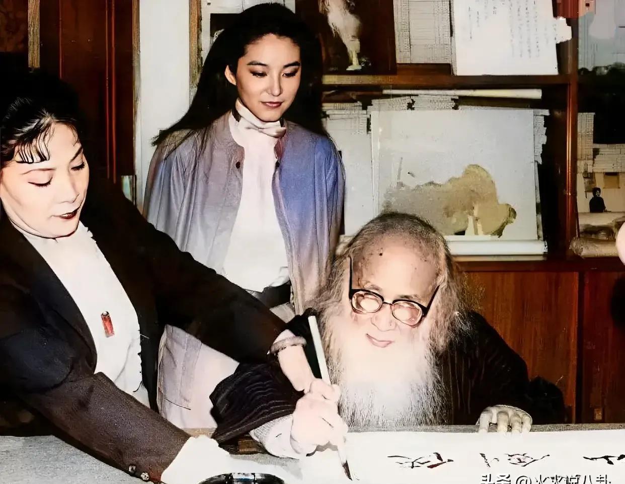 84岁封笔大师,为29岁的她破例了。 不是为政要。 不是为富豪。 是给一个拍武侠片的女演员题字。 1983年,徐克带着林青霞去见张大千。 老爷子已经四年没动过笔。 看到林青霞第一眼,他笑了。 “这姑娘,有侠气。 ” 铺纸,研墨。 “新蜀山剑侠”五个字一气呵成。 写完还嘱咐徒弟:“裱好些,送给林小姐。 ” 那年他84,白发苍苍。 那年她29,青涩紧张。 两人并肩合影,像隔了半个世纪的对话。 四十年后,台北故宫。 那张照片和那幅字,静静地躺在展柜里。 墨色如新,笑容依旧。 看展的人停下来,都会多看几眼。 策展人说—— 这不是简单的追星。 是一个老人,在生命的黄昏里,看见了一种他欣赏的美。 然后用最后一点力气,为这种美做了见证。 **真正的美,从来都能穿透时间,在完全不同的灵魂里,找到回响。 ** 你说,现在的顶流小花,有谁能让这样的大师主动提笔? 评论区聊聊。