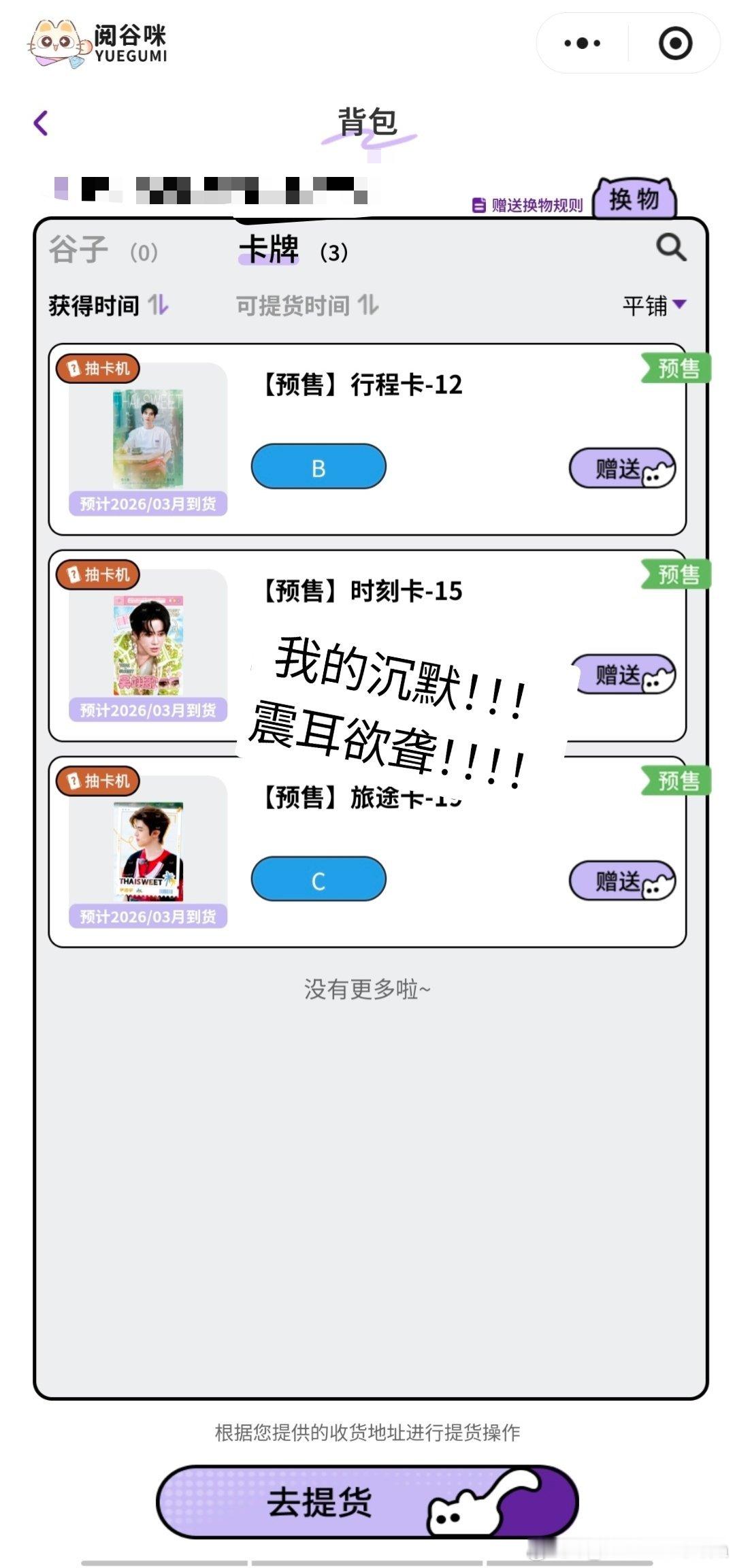 到底谁在抽卡???去Hitcard抽了出不来去阅谷咪抽了一张虞书欣都没有!!!我