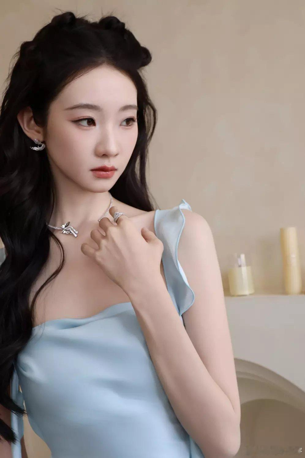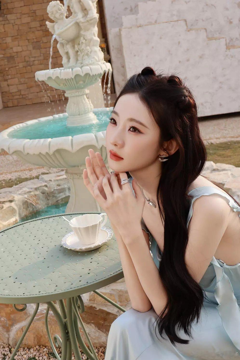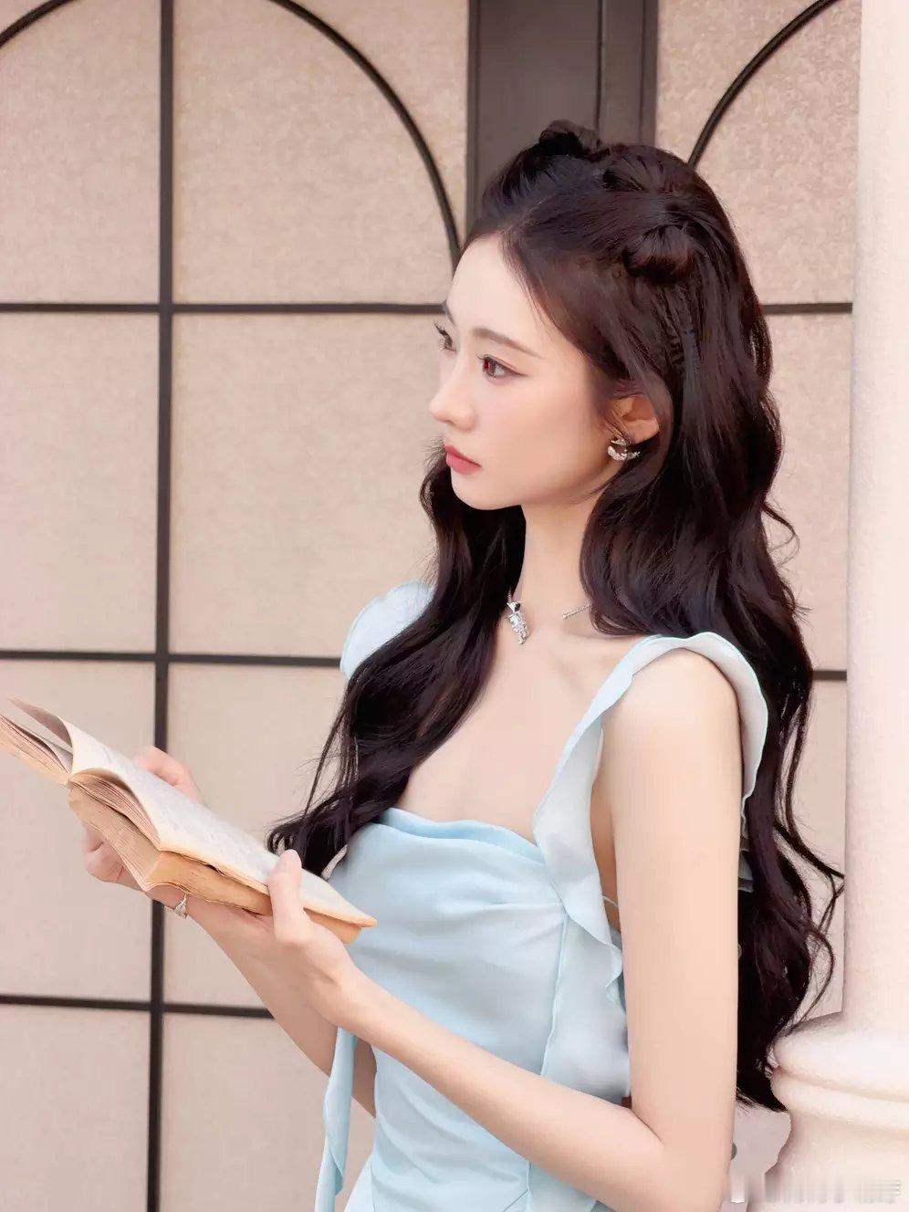 青青娱乐张艺凡穿淡蓝长裙温柔娇俏 抬眸浅笑慵懒又松弛