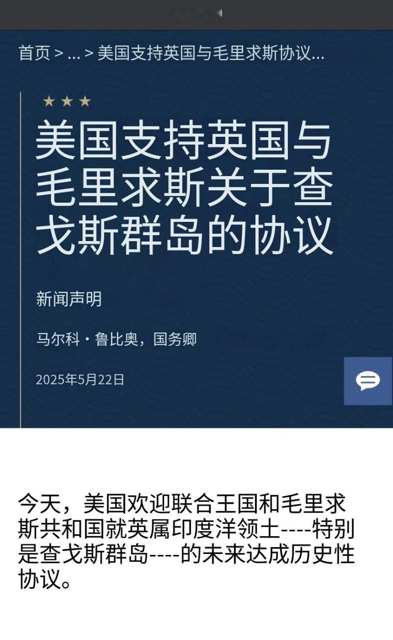 特朗普抨击斯塔默和英国,指责英国首相软弱。特朗普今天(北京时间1月20日)写道:“令人震惊的是,我们‘英明’的北约盟友英国,目前正计划将迪戈加西亚岛美国一个至关重要的军事基地所在地拱手让给毛里求斯,而且没有任何理由。毫无疑问,中国和俄罗斯已经注意到了这一彻底软弱的行为。这些国际强国只认可实力,正因如此,在我领导下的美国,仅仅一年之后,就赢得了前所未有的尊重。英国拱手让出如此重要的土地,是极其愚蠢的行为,也是我们必须夺取格陵兰岛这一国家安全理由的又一例证。丹麦及其欧洲盟友必须做出正确的选择。” [机智]评几句:特朗普对英美“特殊关系”都能弃如敝履,而且翻脸比翻书还快。他怒斥英国“软弱愚蠢”,却选择性遗忘美国国务院去年5月22日刚表态支持该协议(图三图四),国务卿鲁比奥曾盛赞其为“历史性协议”。查戈斯群岛主权移交本是殖民历史的纠错,且迪戈加西亚军事基地仍以99年租期保留美英使用权,所谓“拱手相让”纯属无稽之谈。特朗普不过是借指责盟友转移视线,既为自己觊觎格陵兰岛的霸权野心找借口,又想靠贬低他国彰显自身“强硬”。这种对盟友动辄数落、视承诺为废纸的行径,恰恰暴露了美国所谓“盟友关系”的本质:只有符合自身霸权利益时才存在,一旦触及私利,即便亲密盟友也难逃被牺牲、被指责的命运,这般凉薄与霸道,只会让更多盟友看清其不可靠的真面目。