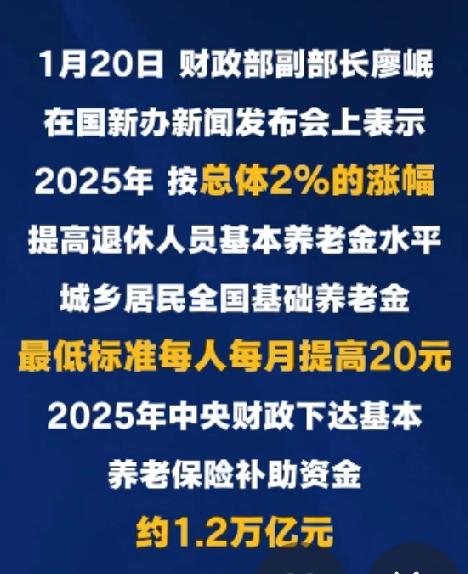 看到2025年养老金总体涨2%的消息,有人说“这点涨幅不够塞牙缝”,也有人默默算起了账,可很少有人读懂这2%背后,国家给1.5亿退休老人的暖心深意!这不是简单的数字上涨,而是经济承压下的民生坚守,是精准到个人的福利倾斜,更是连续22年不变的“老有所养”承诺 ! 别被2%的平均数字骗了,这根本不是“一刀切”的福利,而是国家量身定制的“分层涨薪”!养老金3000元以下的低收入群体,实际涨幅能冲到4%-5%,高龄、长工龄、艰苦边远地区的退休人员,更是这次上调的最大赢家。65岁以上老人能领高龄倾斜补贴,80岁以上每月额外多拿几十元,缴满30年社保的老职工,光挂钩调整就能多涨几十块,这种“提低控高”的设计,把每一分钱都花在了最需要的人身上,这才是真正的民生温度! 更难得的是,这2%的涨幅,是国家在养老保险基金收支平衡下的实打实兑现。2024年企业职工养老保险基金收入7.5万亿元、支出6.8万亿元,累计结余7.1万亿元,还有超2.6万亿元社保基金战略储备托底,全国统筹的机制更是给困难省份强支撑 。经济再难,也没让退休老人的养老钱缩水;压力再大,也守住了年年上涨的民生底线,这份底气,藏着国家对老人的牵挂。 而且这笔钱可不是慢慢涨,7月底前会一次性补发上半年的差额,突然到账的“意外之财”,够买几个月的菜、添一副老花镜、报一个广场舞培训班,看似不多的涨幅,攒起来就是退休生活的小幸福。就像楼下张阿姨说的,“涨的不是钱,是心里的踏实,知道国家没忘了我们这些退休的人”。 有人吐槽涨幅低,可回头看,从2005年到2025年,连续22年的养老金上调,从来不是理所当然。这2%的背后,是不让任何一个老人掉队的坚守,是多缴多得、长缴多得的公平,更是藏在柴米油盐里的民生关怀。说到底,养老金涨的是数字,暖的是人心,这碗“暖心汤”,喝到嘴里,甜在心里! 你身边的退休长辈这次涨了多少?快来评论区晒晒你的养老金涨幅账单,说说这笔钱打算怎么花!