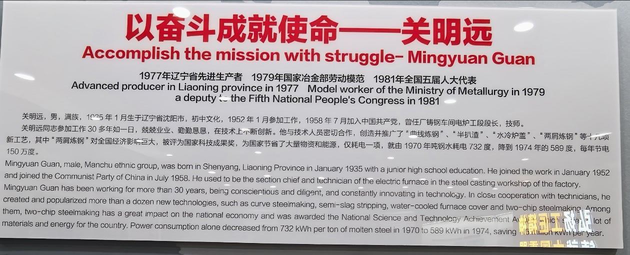 有一种美好叫辽宁 来到沈阳重型装备,看到两位大国工匠关明远和金书昇的纪念栏,关明远创造并推广了曲线炼钢、半扒渣、水冷护盖、两屑炼钢等十几项工艺,金书昇曾用蚂蚁啃骨头的精神,加工出了中空轴、隔膜、偏心套、200马力五拐曲轴,每个人都是业绩等身,什么叫工人阶级,这就是响当当的中国工人阶级。传奇已经远去,业绩人人仰之,大国雄起之日,莫忘前人累积。牢记殷殷嘱托实现全面振兴