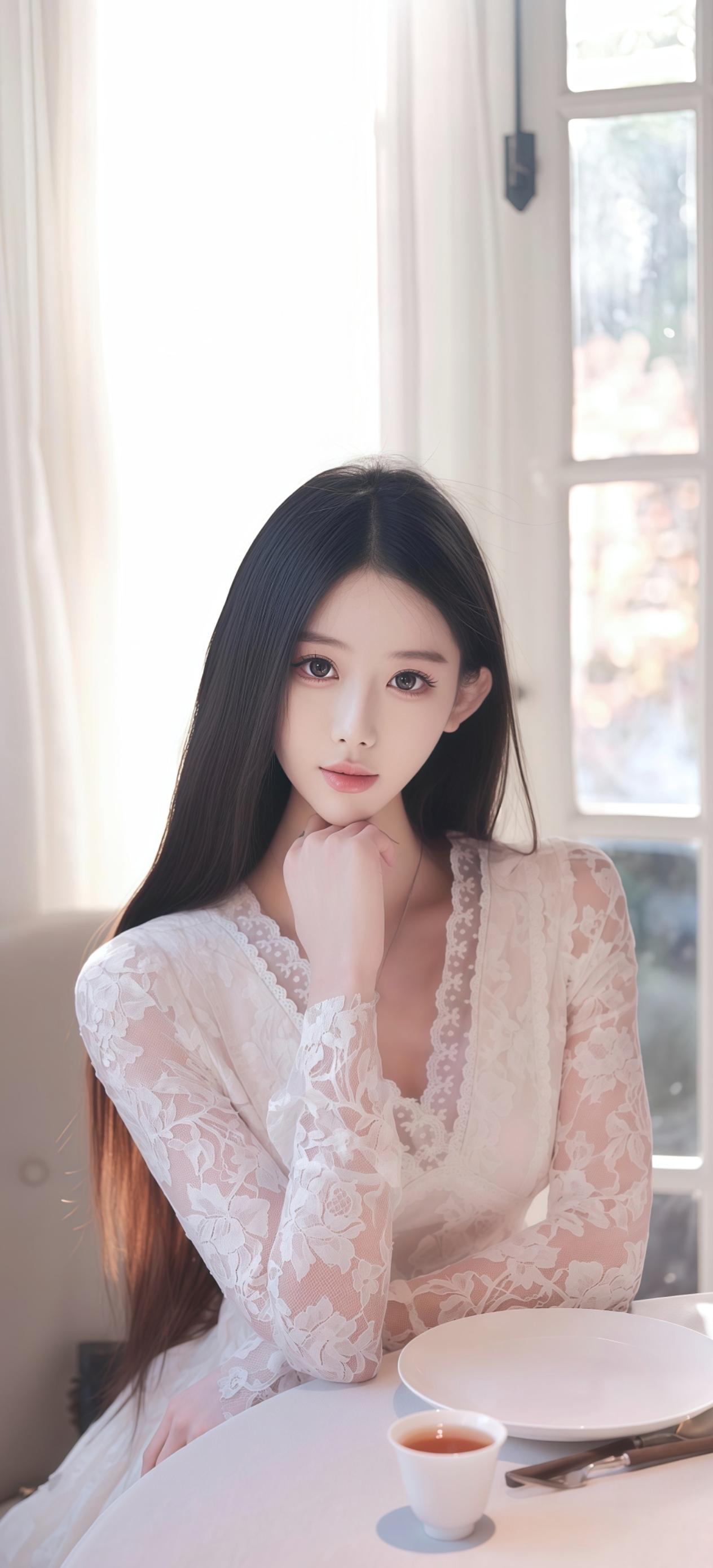 画里真容绝世姿,恍如仙子下瑶池。 眉间黛色春山远,鬓畔珠光夜月迟。 一顾倾城非妄语,再看绝代有余思。 丹青不解留人住,唯有诗心寄与知。