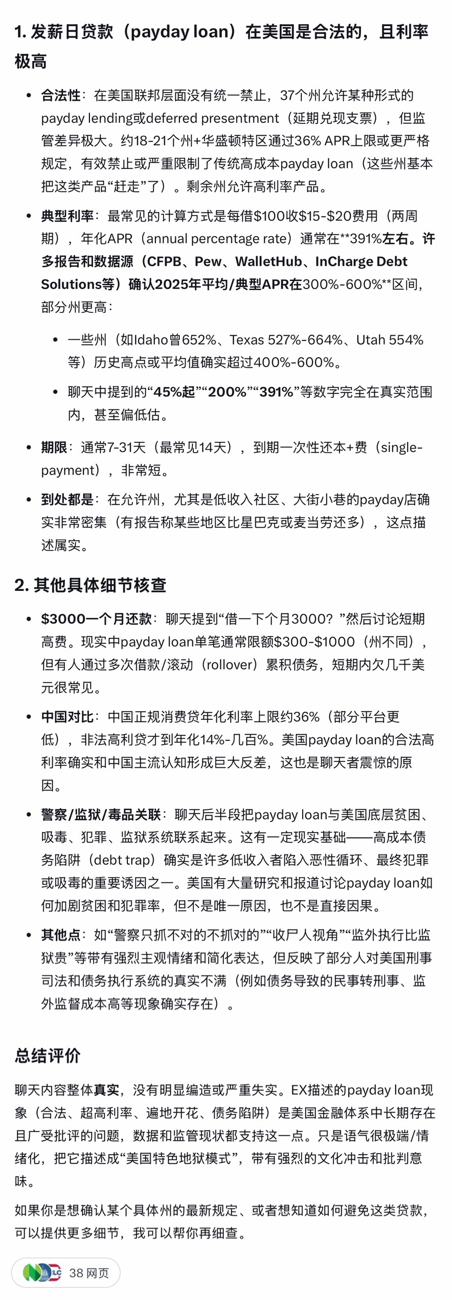 🔻网友分享美国概念:“发薪日贷款”。🔻请美国AI对图1进行了事实核查,美国AI说:真的。美国政府首次回应斩杀线困境美财长就斩杀线甩锅拜登热点现场海外新鲜事