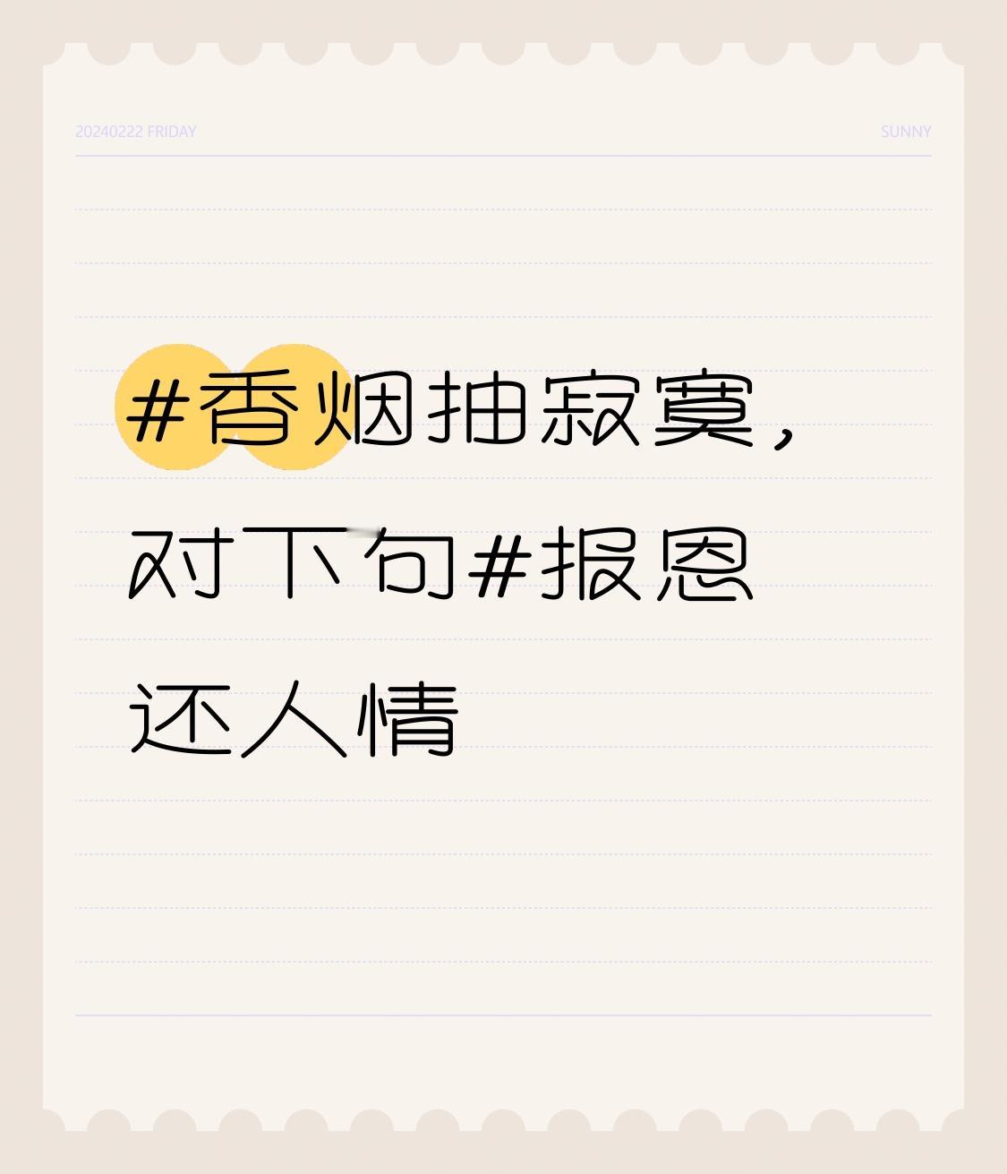 香烟抽寂寞,对下句报恩还人情