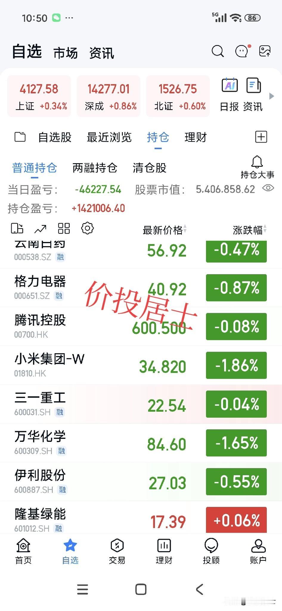 不知不觉万华化学成了我实盘账号的第二大重仓股了,其股价一举一动也会对实盘的波动造