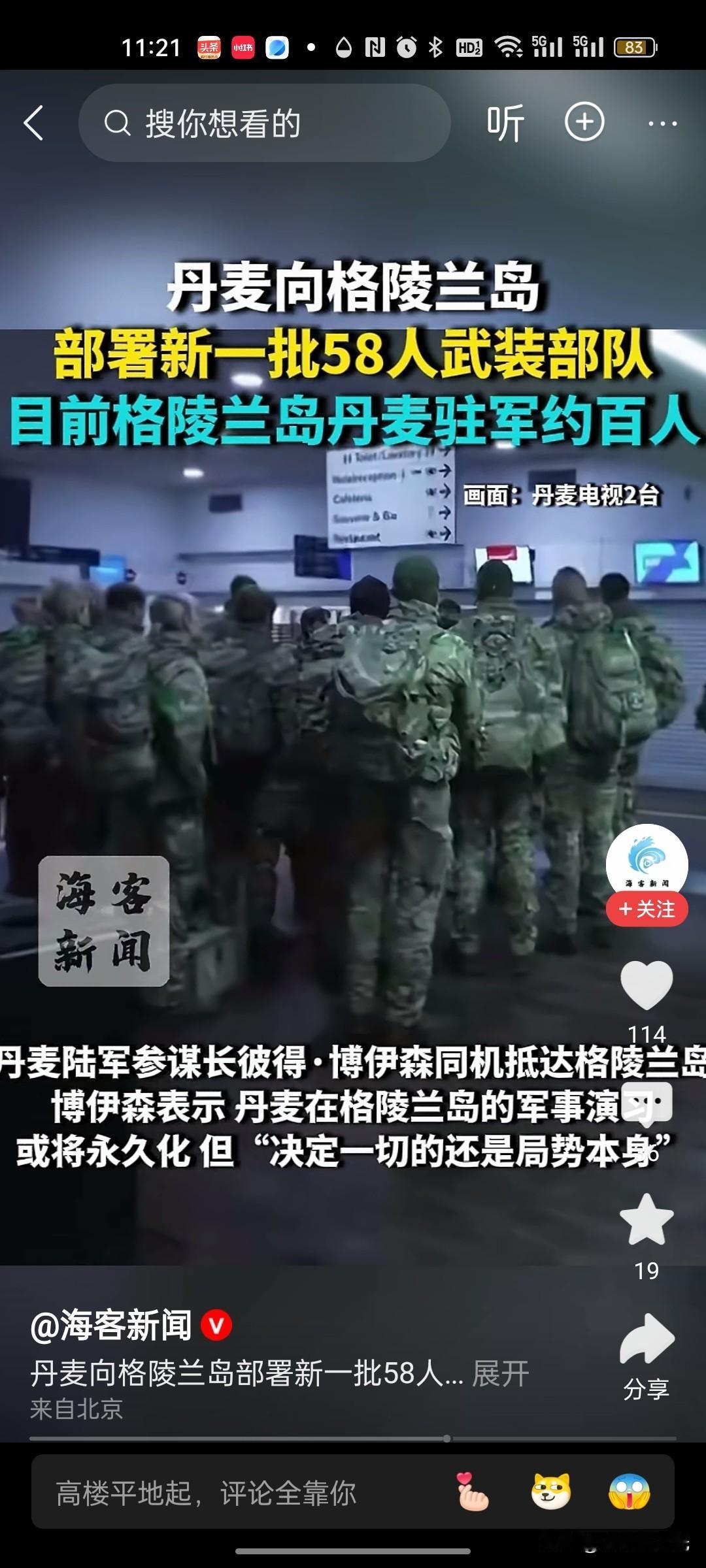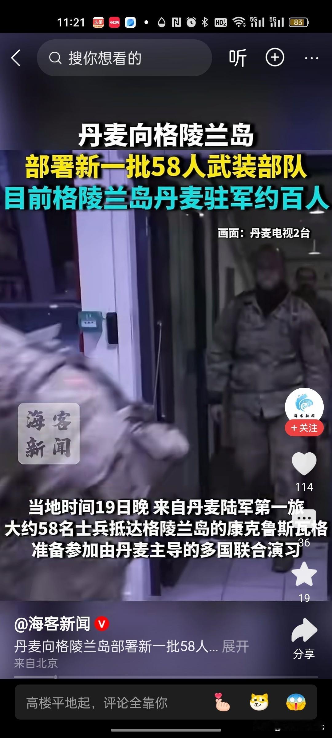 丹麦开始向格陵兰派兵,整整58人,貌似美国在格陵兰就有600人的驻军吧,这么点人