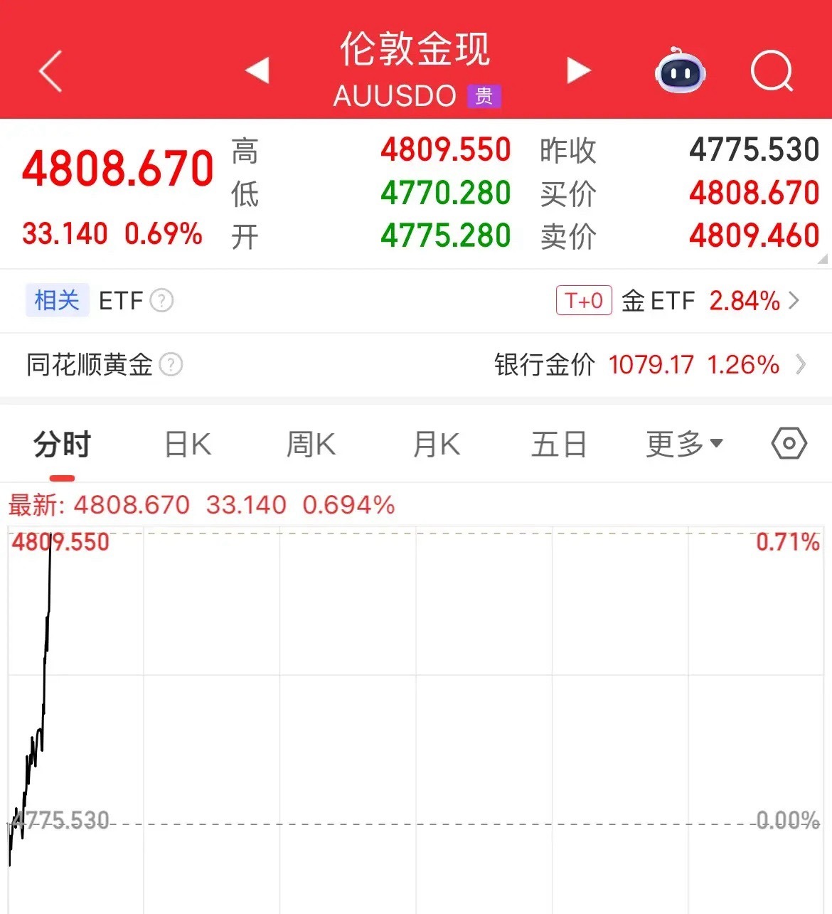 现货黄金突破4800美元了,站上去了涨幅0.69%,本来白银要回调的,又被拉上去了白银站上95美元/盎司了贵金属、有色金属,今天继续往上冲啊。