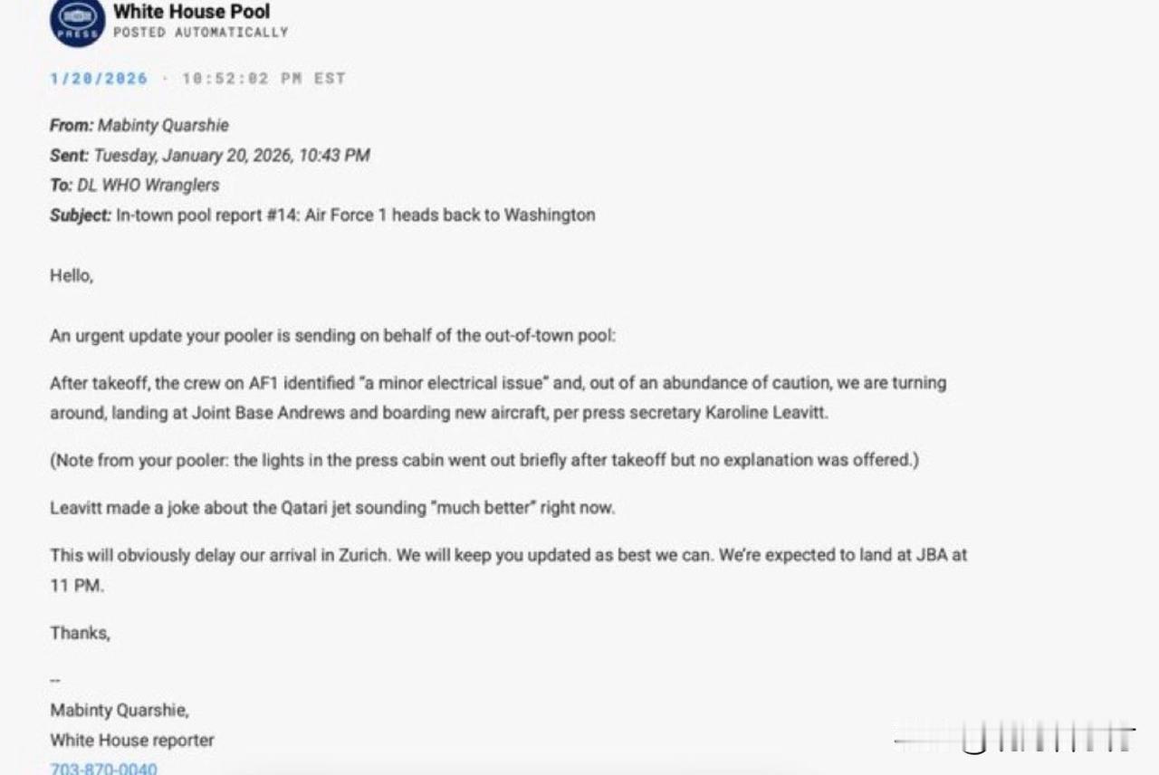最新消息:美国空军一号起飞后客舱灯“短暂”熄灭,但未给出任何其它解释。 据报道,白宫发言人卡罗琳·莱维特表示,卡塔尔赠送给美国陆军部的全新747飞机现在听起来“好多了”。 目前作为美国空军一号使用的747飞机于1987年首飞。