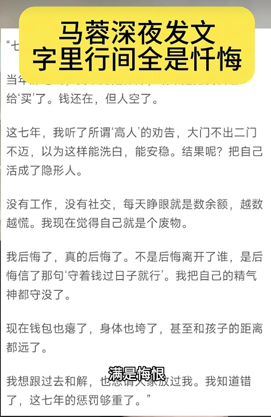 马蓉深更半夜睡不着,发了一个忏悔的小作文,向大家道歉,请求大家原谅。字里行间全是后悔,你们觉得能原谅她吗? 我个人认为绝不能原谅,因为她不单单是出轨,她还谋财呀。如果是单单的情感上出轨,还说得过去。青春年少,火力四射,耐不住寂寞,情感出轨。那可能还有回旋的余地。但是她呢?不但情感出轨身体出轨,而且还伙同他人,转移财产。这一点,触及了 人性的底线。怎么可能原谅她呢?这是现代的潘金莲啊!马蓉 马蓉旧事 王宝强 马蓉