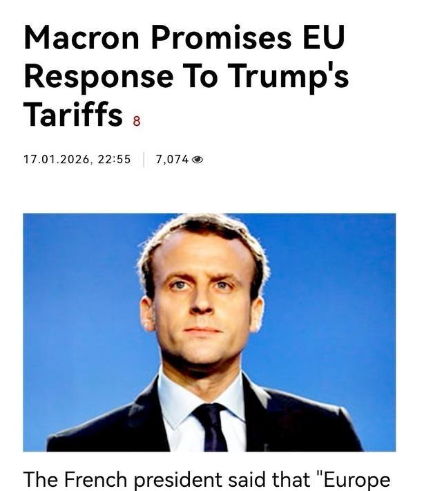 特朗普碰上硬茬了!马克龙表示,若有必要,法国将请求启动欧盟的 “反胁迫工具”以应对美国的关税威胁。 欧盟的反胁迫工具于2023年正式生效,这项法规旨在保护成员国免受第三方经济压力影响。工具允许欧盟统一征收报复性关税、限制投资或暂停贸易优惠。马克龙作为法国领导人,积极推动欧盟一体化,在此事件中率先表态。法国官员透露,马克龙已与欧盟委员会沟通,准备正式提出激活请求。 反胁迫工具的启动需欧盟理事会多数票通过,一旦实施,将针对美国特定商品征收对等关税。过去,欧盟曾用类似机制应对美国钢铝关税,但规模有限。此次事件涉及多国,欧盟内部协调成为关键。德国作为欧盟经济引擎,对美出口依赖较大,财政部长表示需谨慎评估影响。英国虽脱欧,但参与军演并受关税波及,首相公开批评特朗普做法破坏盟友关系。挪威和瑞典等北欧国家强调军演纯属防御,不应与贸易挂钩。芬兰总统呼吁欧盟团结,荷兰外交部则表示支持法国立场。 特朗普的关税威胁源于其一贯的贸易保护主义策略。他在第一任期内对欧盟征收钢铝关税,导致双方贸易战升级。重返白宫后,特朗普承诺加强美国制造业,关税成为首选工具。格陵兰岛问题并非单纯经济,而是地缘战略博弈。 美国担忧俄罗斯和中国在北极活动增加,特朗普将收购视为国家安全优先。丹麦政府重申格陵兰岛非卖品,军演得到北约支持。八国联合声明指出,关税威胁破坏跨大西洋关系,可能引发恶性循环。欧盟外交政策负责人强调优先对话,但不排除使用工具。马克龙的回应提升了法国在欧盟的影响力,他过去多次领导对美谈判,如数字税争端。法国经济高度依赖欧盟市场,此次事件考验马克龙的外交手腕。其他国家如瑞典首相在社交媒体表示欧洲不会被勒索,显示出集体韧性。 反胁迫工具的具体机制包括调查阶段和反制阶段。欧盟委员会负责评估第三方胁迫行为,若确认存在,可提出反制清单。工具于2023年通过,旨在填补WTO争端解决机制的空白。美国退出多项国际协议后,欧盟加强自主防卫能力。 特朗普的决定可能影响全球供应链,欧洲汽车和机械出口首当其冲。德国出口商协会警告,关税升级将导致就业损失。法国葡萄酒和奢侈品行业也面临风险,马克龙政府已启动内部评估。英国作为非欧盟国家,需单独应对,但与欧盟协调可能性大。挪威石油出口依赖美国市场,此举加剧能源紧张。芬兰科技企业担忧供应链中断。整体而言,这次事件凸显贸易与地缘政治的交织,欧盟需平衡内部分歧。