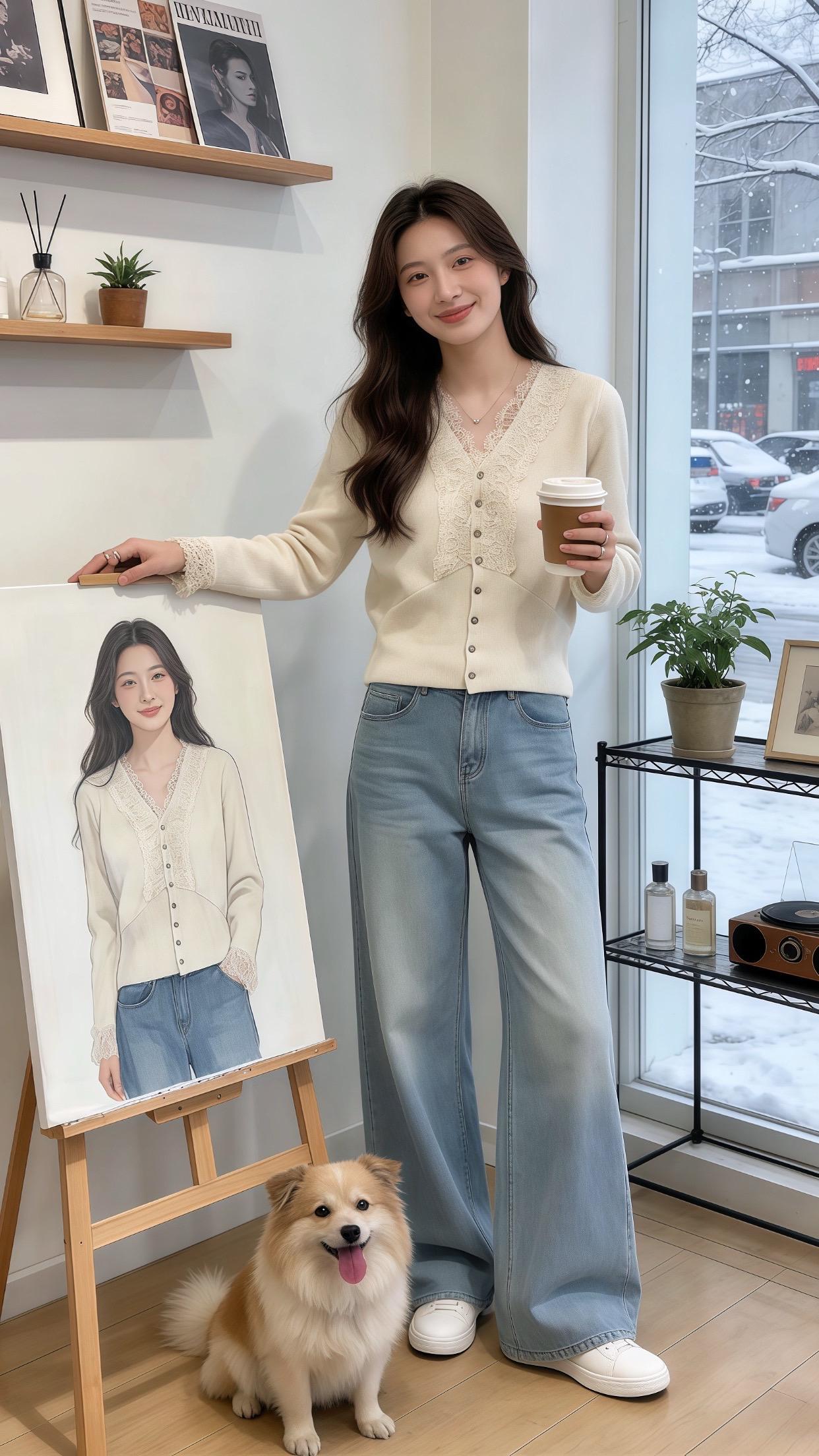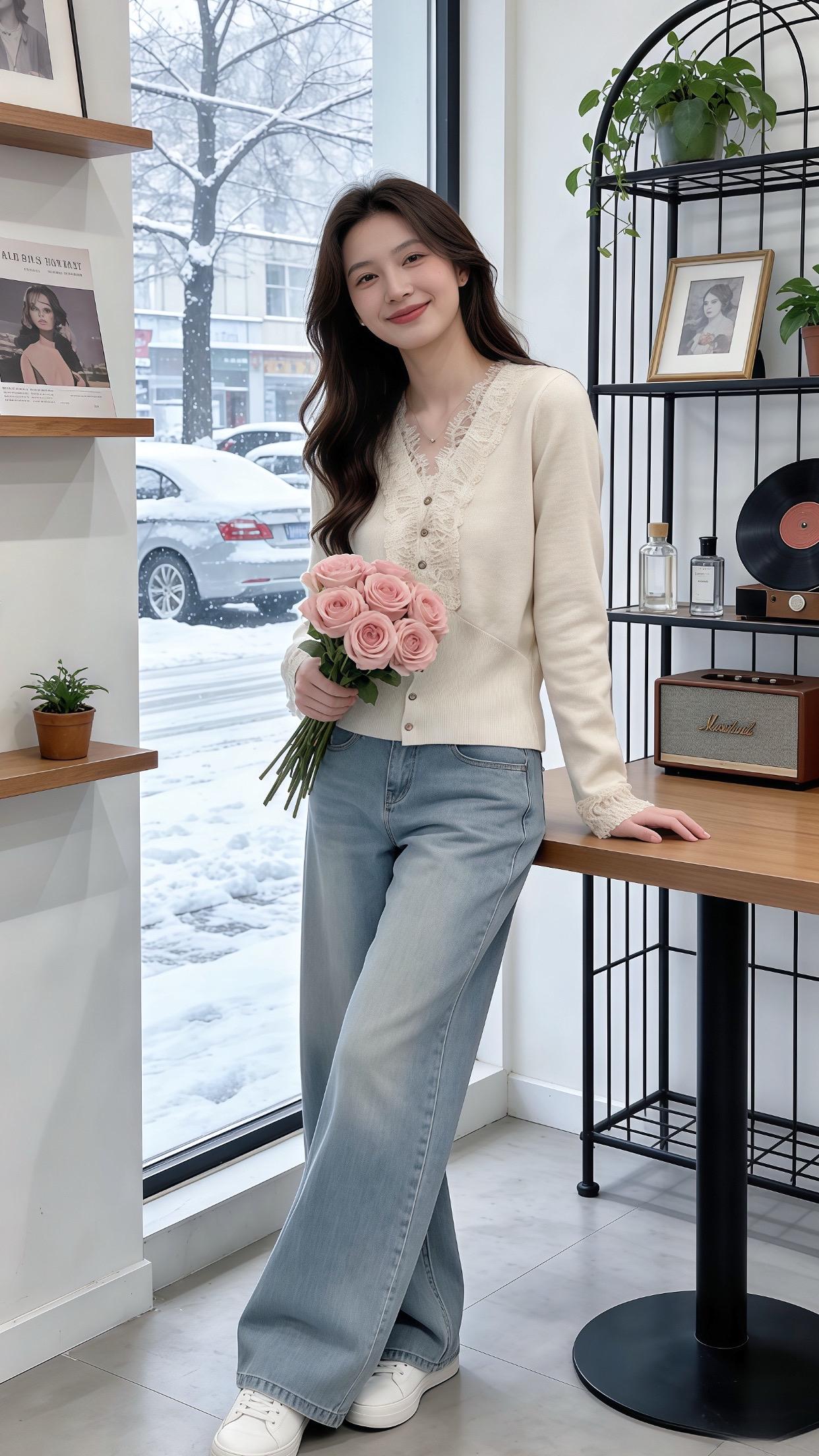 光之影&AI都市街头风,白衬衫+牛仔裤,清新自然,轻松出行!白色衬衫穿搭简