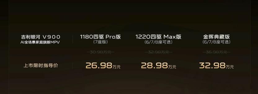 一车装下42人破世界纪录,吉利银河V900有点意思。最近,吉利银河旗下中大型MPV银河V900终于上市了,上市价格还是比较惊喜的,叠加了限时优惠26.98-32.98万。作为一款MPV,这款银河V900把空间优势发挥到极致,拥有91.8%的得房率。此前,吉利银河还曾进行过一项空间的极限挑战,银河V900可以实现一车装下42人,创下“最多人装进一辆MPV”的吉尼斯世界纪录。对于向往MPV市场的家庭来说,银河V900的价格还是挺诚恳的,大家觉得银河V900有可能搅乱MPV的市场格局吗?吉利银河v900全球上市26.98万起