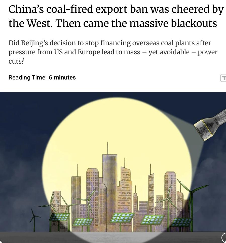 外媒:2021年中国承诺停止海外新建和资助煤电项目,西方政府和气候倡导者对此表示欢迎。然而,如今从智利到西班牙和葡萄牙,多个国家面临大规模停电。西方要求中国停止出口煤电项目,是否导致了这一局面? 中国在国内大力发展高效煤电单元作为电网稳定器,支持风能和太阳能的快速扩张。如今,欧洲和拉丁美洲等地区的可再生能源主导电网在面临极端天气时出现脆弱性,这一局面揭示了中国曾被要求停止出口的技术,可能正是避免这些电力故障的关键。