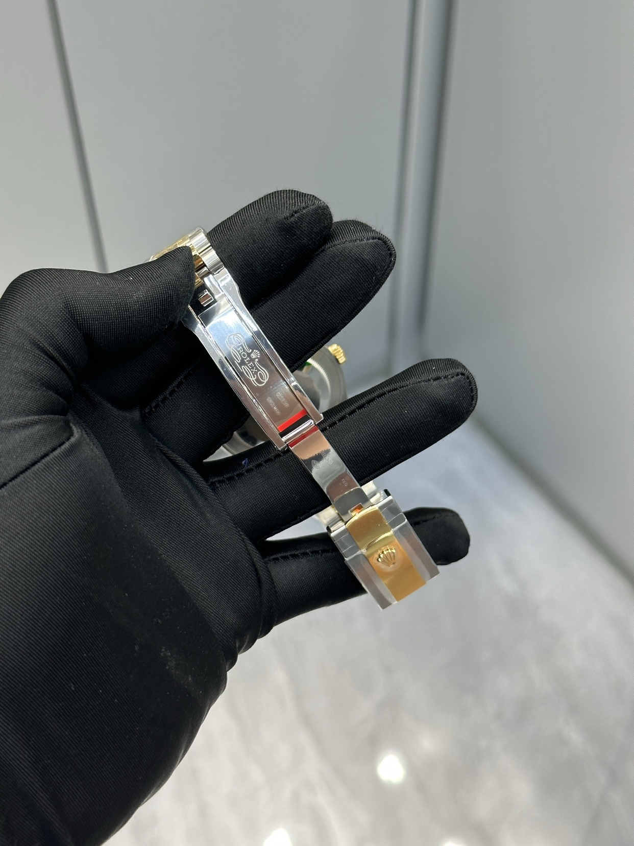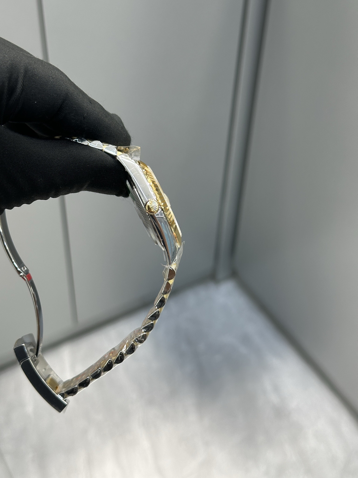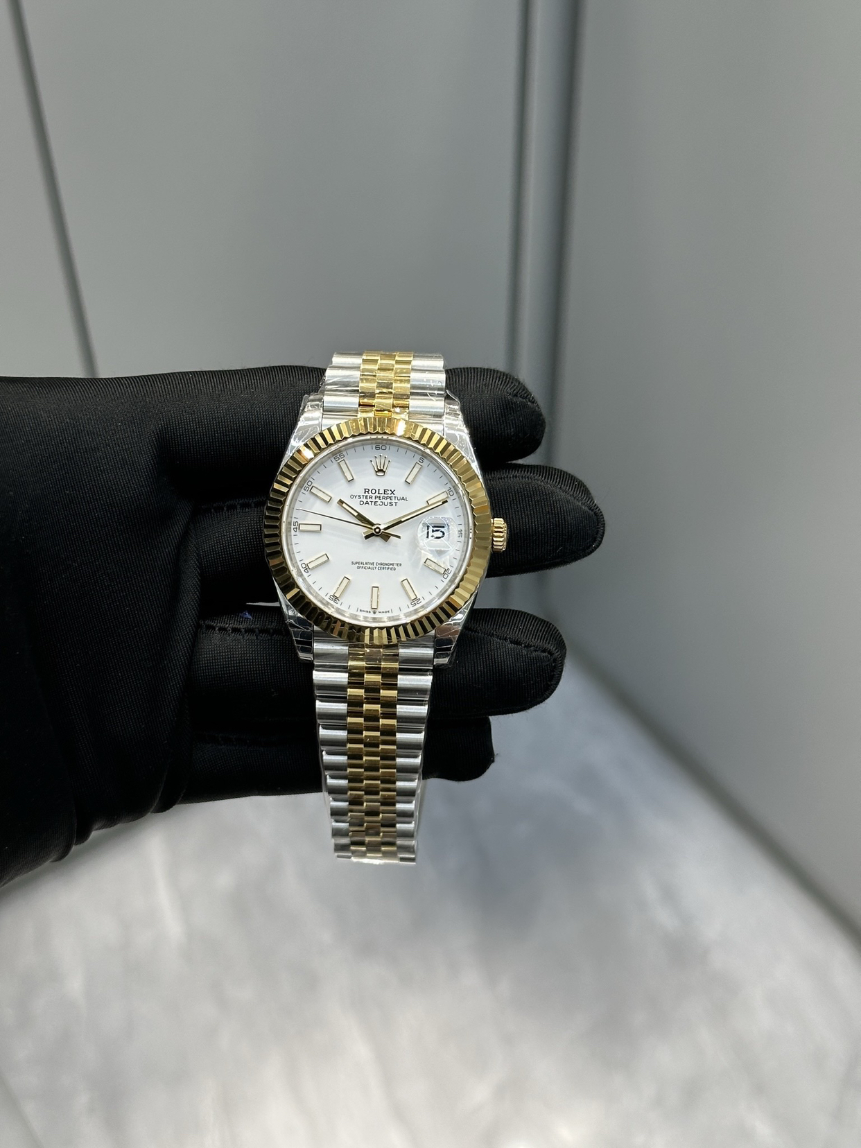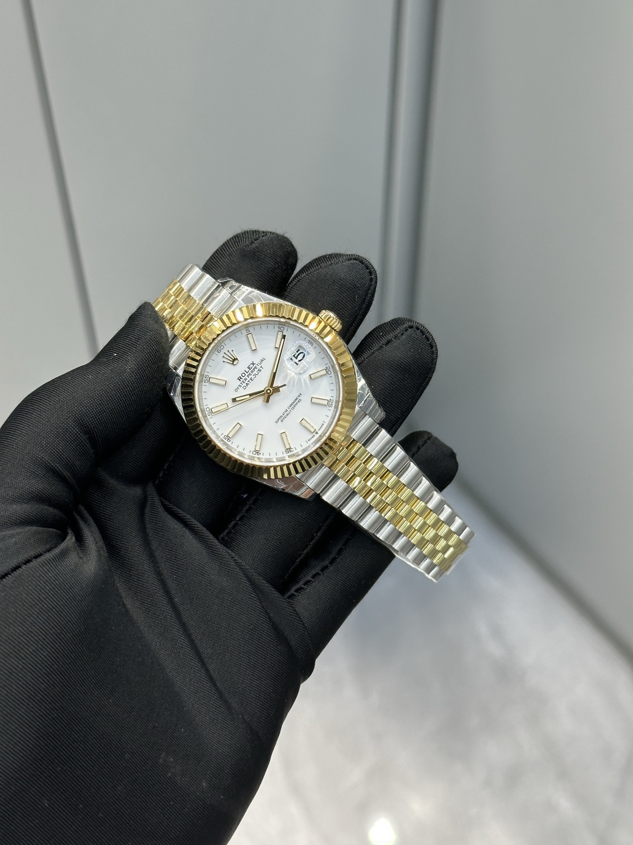 劳力士日志型间金白盘,帅爆了! 我常常觉得,等待才是这只表真正的表盘。 第一次见到它,是在橱窗里。金与钢的线条,在白瓷般的底盘上安静地对峙,像是夜与昼在此握手言和,达成一种永恒的休战协议。我走进去
