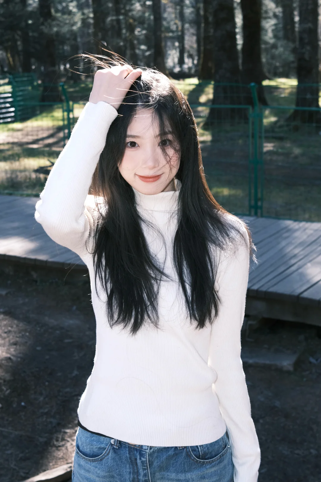 晴湖白衫漾温柔晴日的阳光落在湖面,碎成粼粼的光斑,白色翻领短款上衣带着清爽