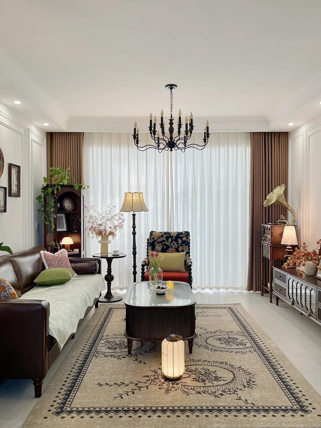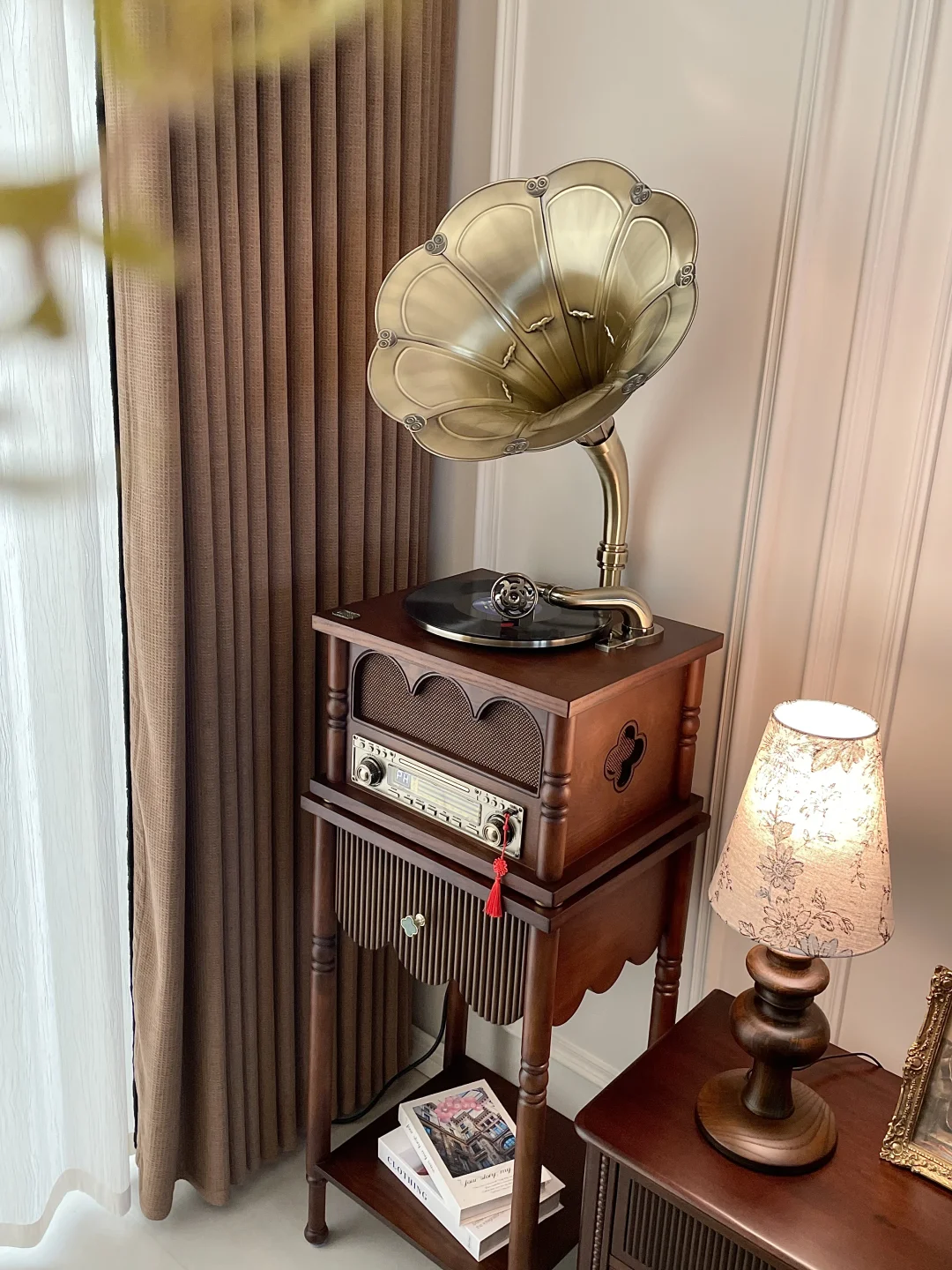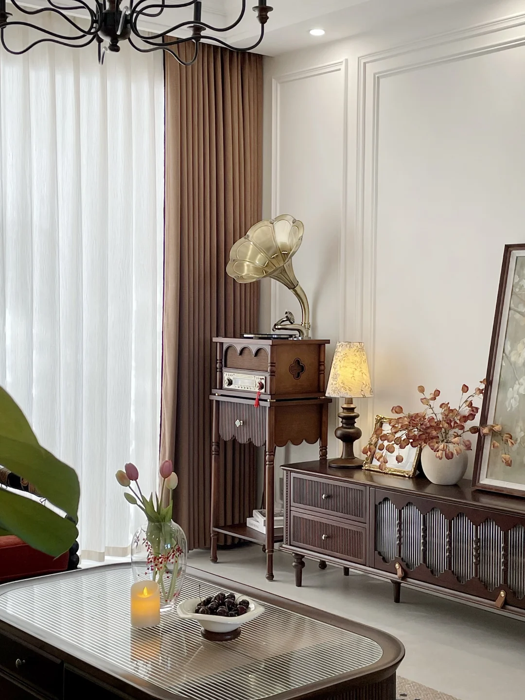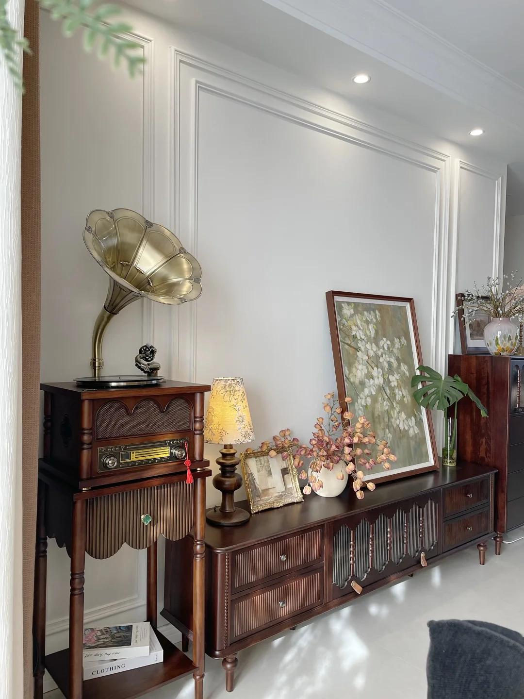 谁懂啊!普通家庭不砸钱搞硬装,把预算都花在能提升幸福感的软装上!事实证明我选对了~没有复杂吊顶、没有花哨背景墙,全靠软装我也装出了梦想中的美式复古家,每天下班推开门都忍不住感叹:这才是生活该有的样子呀! 第一眼就被梦境玫瑰地毯的花色戳中!不是张扬的艳色,而是像被岁月沉淀过的低饱和色调,更像古典油画里晕染开的花影,温柔又有故事感~美拉德色系和客厅的胡桃木色家具的暖调交织在一起,瞬间拉满复古氛围感! 如果说地毯是氛围担当,那花好月圆留声机就是精致生活的灵魂!黄铜喇叭的温润光泽太有年代感了,只摆着都像一件复古艺术品,提升了整个家的格调~ 周末午后,窝在地毯上放上一张老唱片,静静聆听着醇厚的旋律漫满房间,时间都仿佛慢了下来,静静享受这独有美式复古的浪漫~真的太幸福啦!