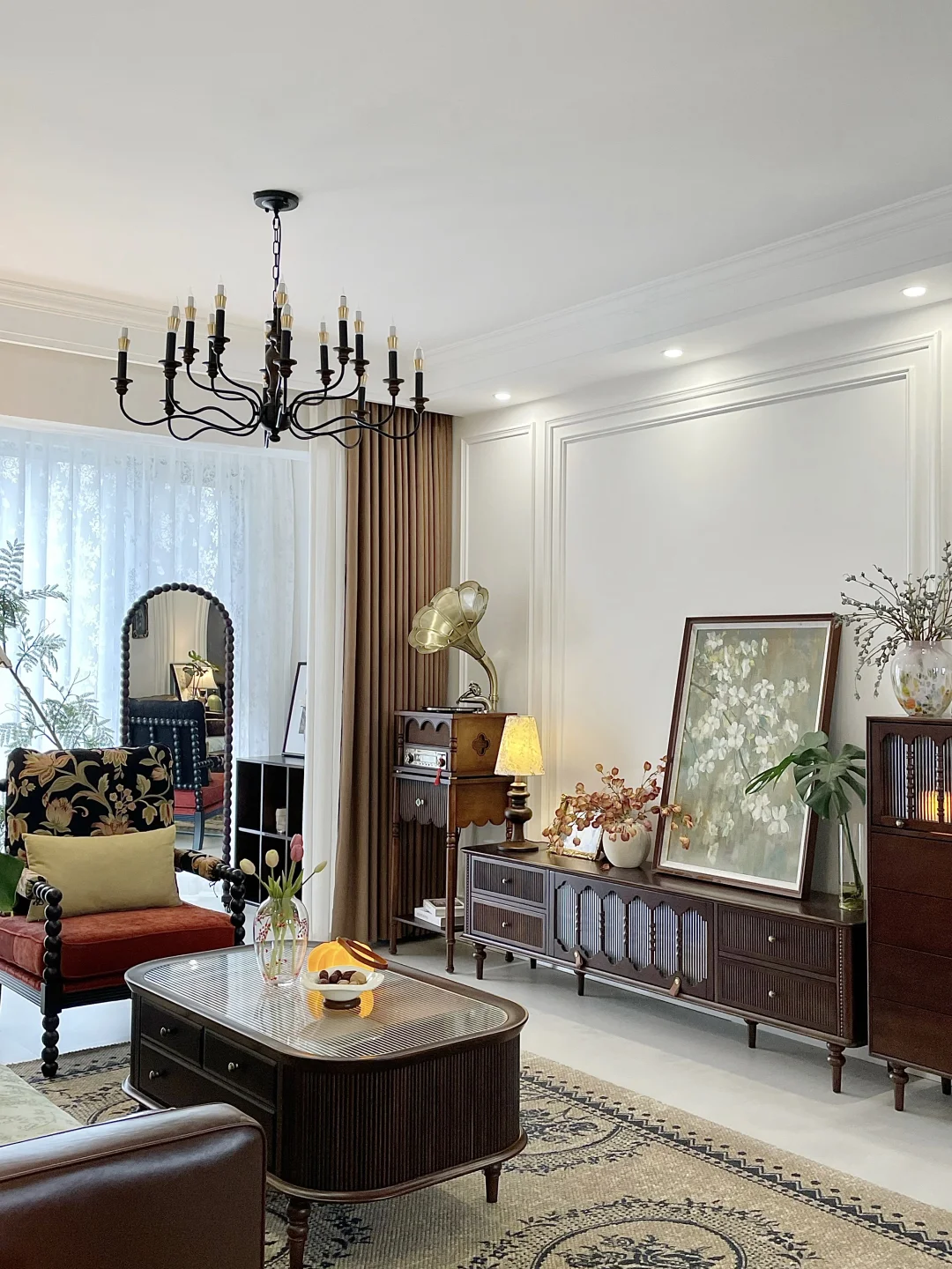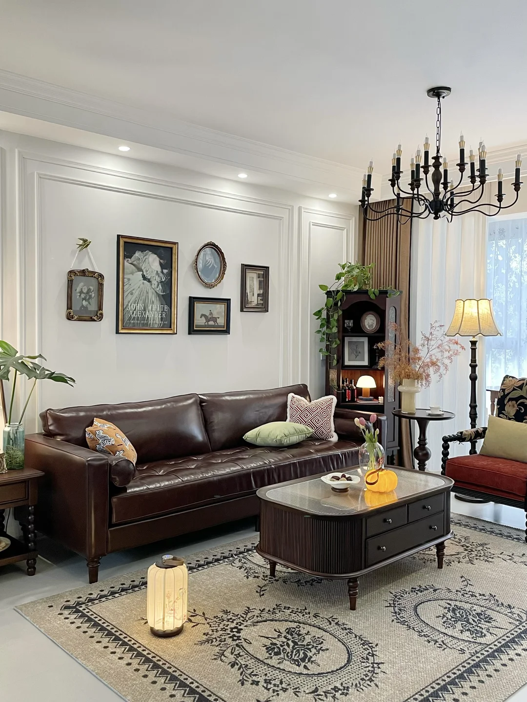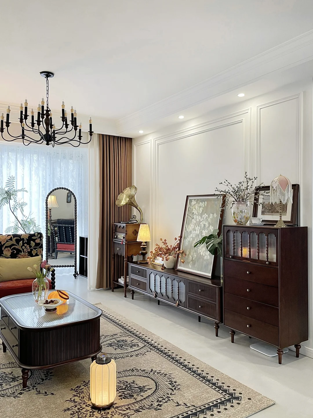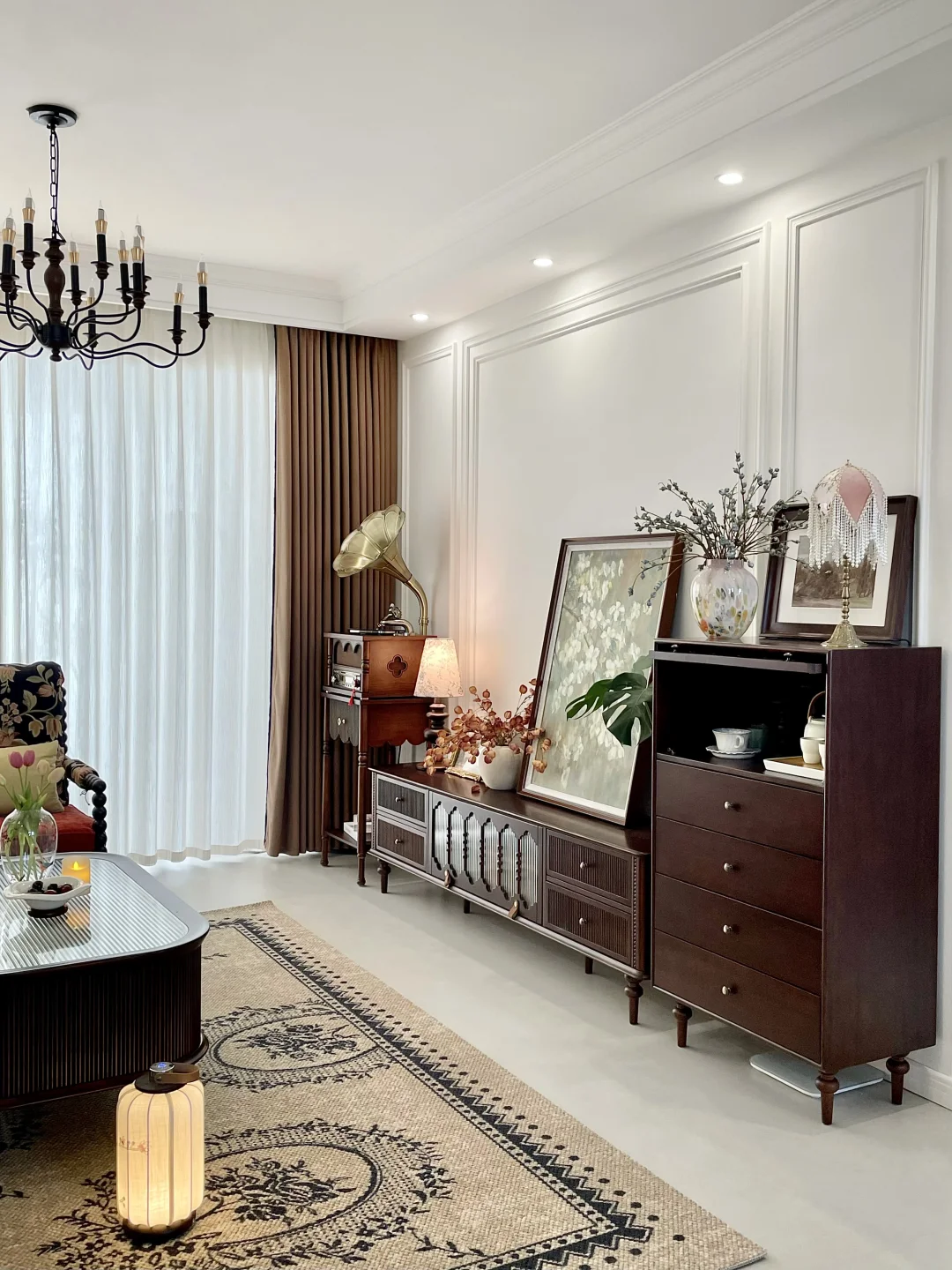 谁懂啊!普通家庭不砸钱搞硬装,把预算都花在能提升幸福感的软装上!事实证明我选对了~没有复杂吊顶、没有花哨背景墙,全靠软装我也装出了梦想中的美式复古家,每天下班推开门都忍不住感叹:这才是生活该有的样子呀! 第一眼就被梦境玫瑰地毯的花色戳中!不是张扬的艳色,而是像被岁月沉淀过的低饱和色调,更像古典油画里晕染开的花影,温柔又有故事感~美拉德色系和客厅的胡桃木色家具的暖调交织在一起,瞬间拉满复古氛围感! 如果说地毯是氛围担当,那花好月圆留声机就是精致生活的灵魂!黄铜喇叭的温润光泽太有年代感了,只摆着都像一件复古艺术品,提升了整个家的格调~ 周末午后,窝在地毯上放上一张老唱片,静静聆听着醇厚的旋律漫满房间,时间都仿佛慢了下来,静静享受这独有美式复古的浪漫~真的太幸福啦!