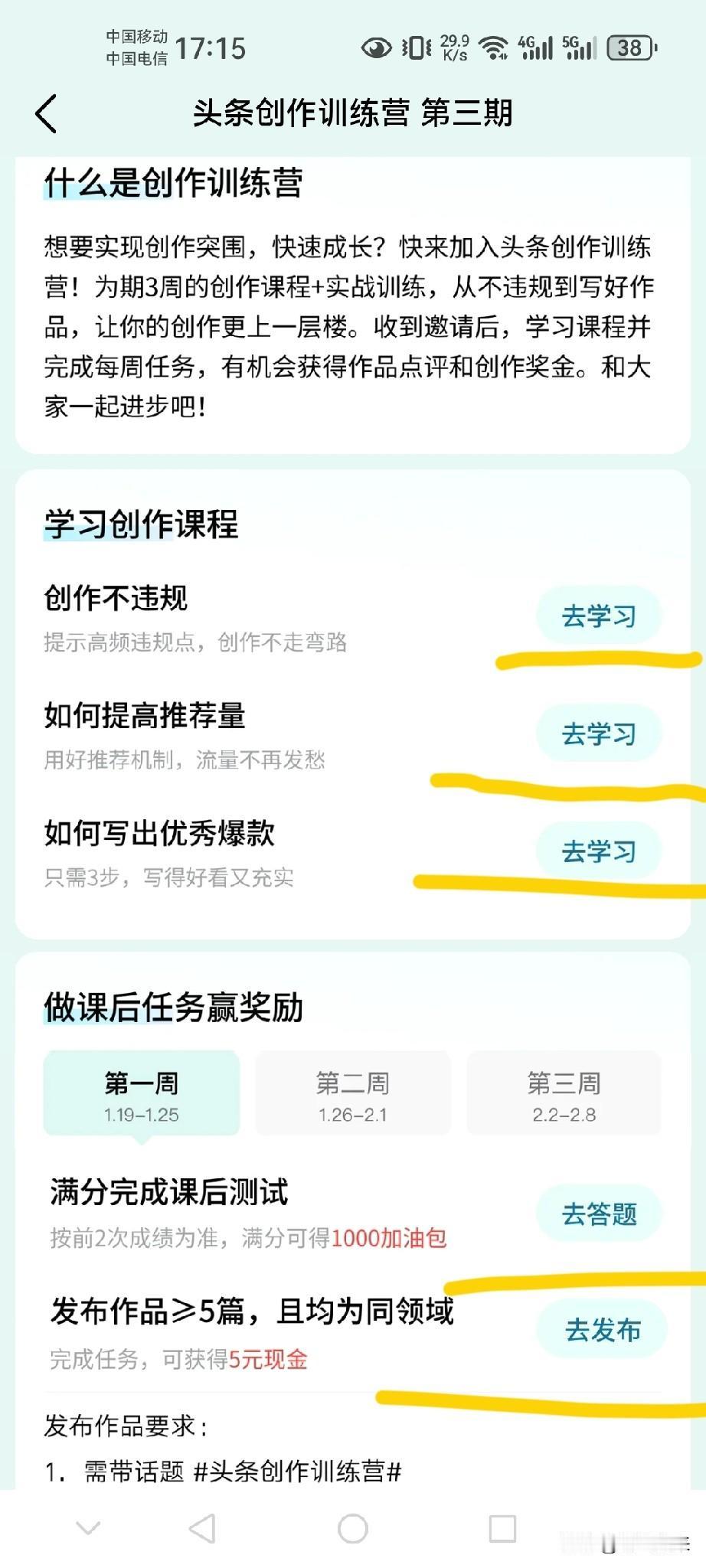 头条这是要重点培养我了吗! 还是把我作为潜力股储备! 真是让我受宠若惊,头条看到了我最近的努力,想让我的创作更加有方向更有目标更加高质量高产! 你还别说给我推送学习创作课程,怎么创作不违规、如何提高推荐量、如何写出爆款! 我看完以后真的很受用,对我很有帮助! 我看到有的友友也收到了此类邀请,你要相信头条不会无缘无故的推送,都是大数据精准匹配的! 既然头条给这个机会,那就好好把握。 虽然奖励条件不是很诱人,可以说平平无奇,但是也是对自己的一次鼓励! 星光不负赶路人,时光不负有心人!