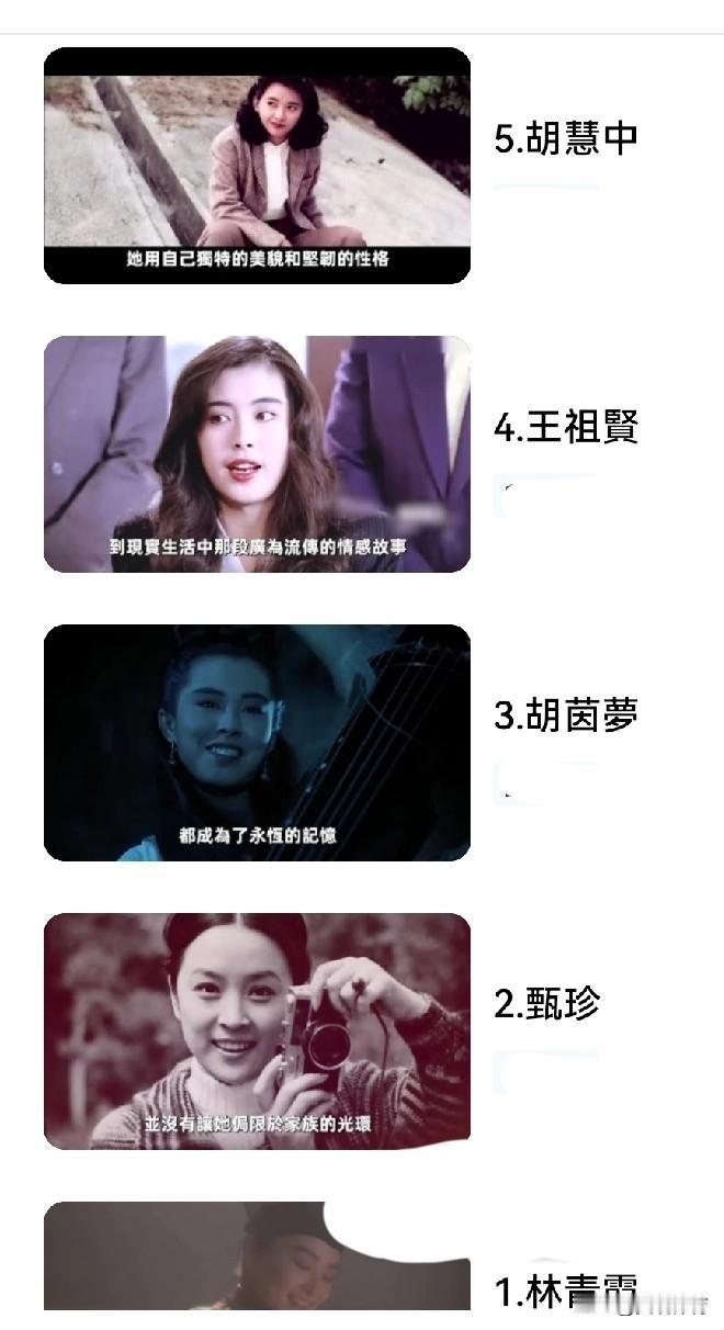 台湾地区颜值最高的女明星 林志玲名列第十, 胡慧中第五, 胡茵梦第三。