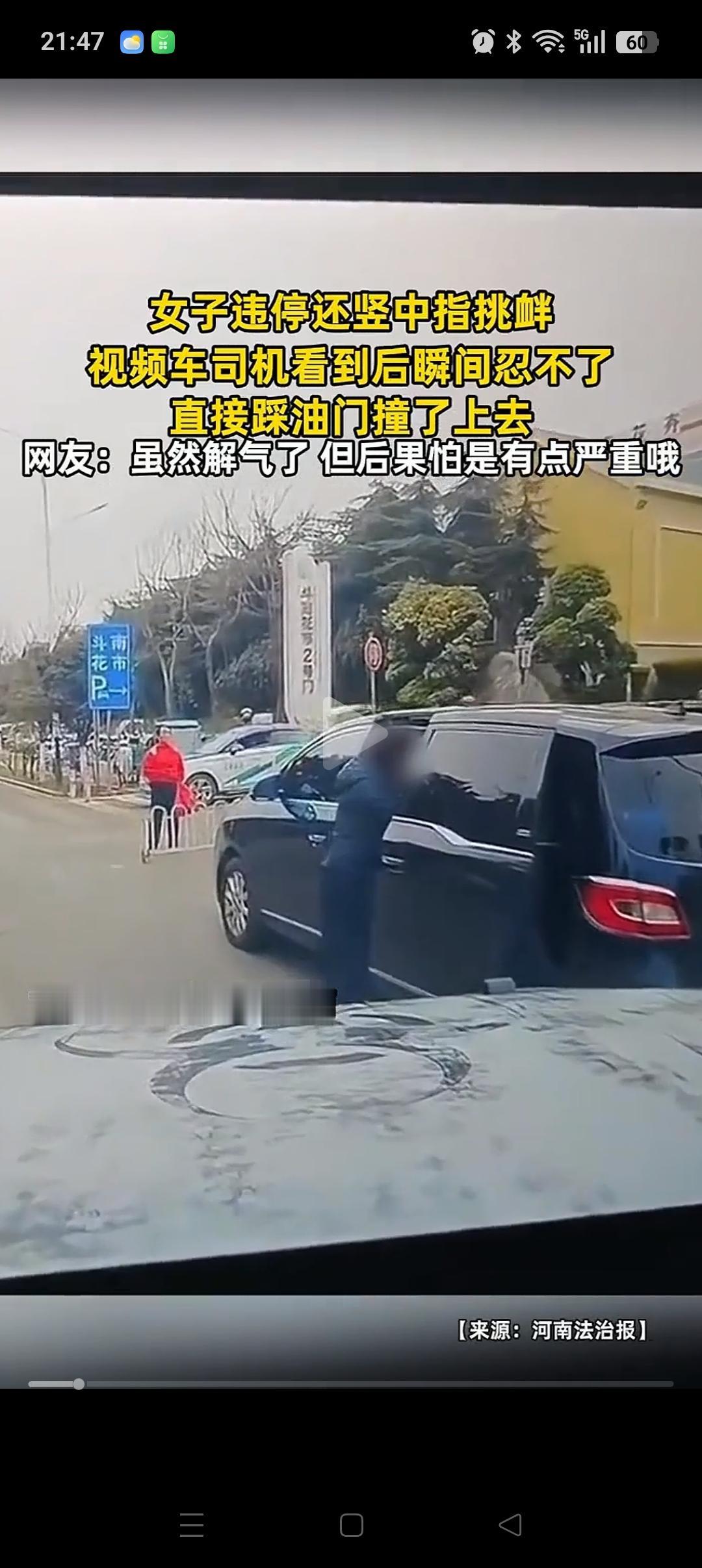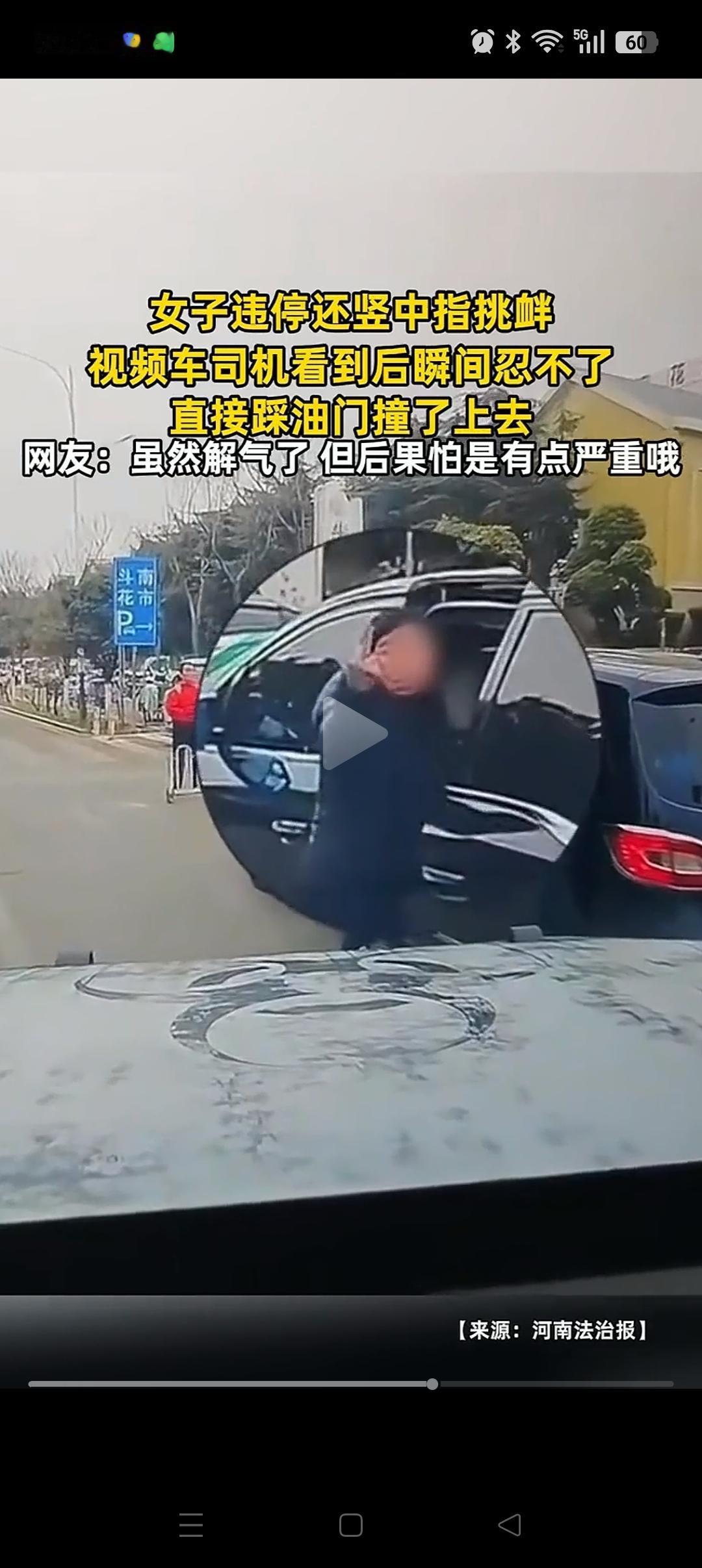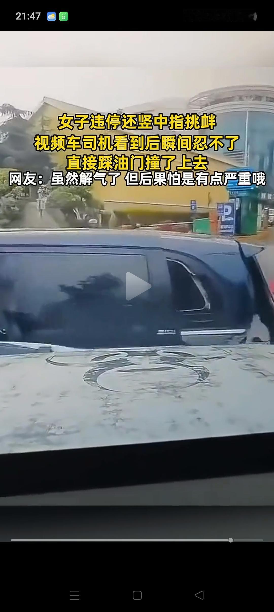 这下好了, 全国都知道了! 没想到,昆明一女子长时间违停把车停在大门口收拾东西。听到后车按喇叭的提醒后,居然朝司机竖起了中指!更没想到的是,后车司机不慎操作失误,直接撞了上去。 有网友分析:应该是后车司机想打电话求助帽子叔叔,不小心把手机掉地上了,去捡手机造成的。 也有网友分析:他是长时间踩刹车,脚突然有点酸了,没控制住造成的,真的尽力了! 但我觉得,他可能是看到女子竖中指,情绪激动,不小心把油门当刹车了,也可以理解。 责任100%是后车司机的,但希望女子也谅解下吧。毕竟谁都会有失误的时候,更何况是她有错在先[捂脸][捂脸]。。