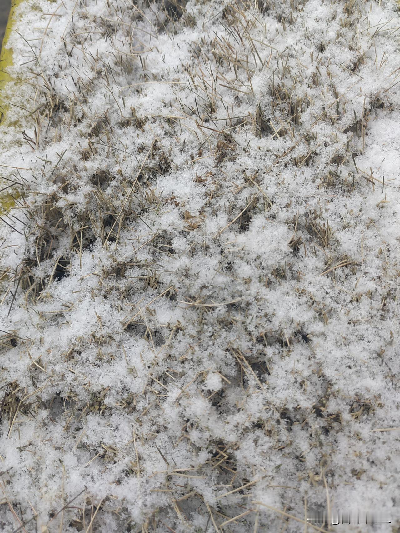 枯萎的草,被雪覆盖,待到春来,又出绿芽。