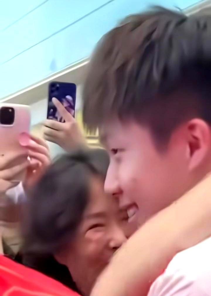 爸妈接机,他秒变小朋友 巴黎落地那天,王楚钦推着行李一抬头,看见爸妈站在栏杆外。他先愣半秒,嘴角就压不住了,笑得跟考试提前交卷的小孩似的。粉丝镜头里,他平时那股“谁都别惹我”的狠劲瞬间卸货,只剩一句软绵绵的“妈,我饿了”。 我刷到视频,反复看了三遍。球场上的他摔拍子、吼声震天;爸妈面前,他老老实实让爸爸拎包,妈妈伸手揉他脑袋,他还歪头配合。同一副肩膀,一边扛着国家荣誉,一边蹭着老妈的围巾,反差得离谱。 有人说运动员最苦的是伤,是输。我看最苦的是不能哭。奥运夺冠那晚,他憋得眼眶通红,也只敢把脸埋进毛巾。直到回家,才在爸妈面前把嘴角笑裂,像把一年攒下的委屈一次性报销。 我们总催他拿大满贯,他爸妈只问他累不累。冠军很多,儿子只有一个。下次再喊“头哥冲”,记得留点空隙,让他先把孩子身份还给自己。