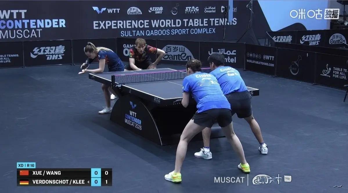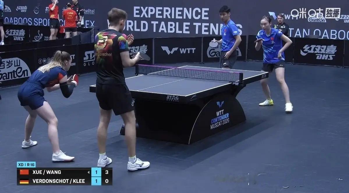 【薛飞王晓彤组合首战告捷,将迎来内战强手】号称张本智和狙击手的薛飞,本站单打迎来突破,进入到正赛,与山东姑娘王晓彤搭档混双,也顺利通过首轮。26岁的薛飞,蹉跎很多年,也该支棱起来了。 马斯喀特常规挑战赛混双1/8决赛,薛飞/王晓彤3-1击败比利时组合沃登肖特/克莱,四局比分11-6、7-11、11-6、11-7,用时28分钟晋级8强,1/4决赛将与黄友政/石洵瑶内战。 首局(11-6),薛飞直板反手拧拉+王晓彤正手补板,快速建立优势,轻松拿下。 次局(7-11),对手提速+线路调动,薛/王失误增多,节奏被打乱,丢局。 第三局(11-6),加强台内控制,减少无谓失误,重新掌控节奏,再下一城。 末局(11-7),中段发力拉开分差,顶住对手反扑,锁定胜局。 薛飞直板优势,反手拧拉质量高,台内挑打与线路变化限制对手起板,关键分敢出手。王晓彤衔接稳健,正手衔接快,防守转进攻效率高,与薛飞轮转失误少。 二人在次局失利后迅速改变节奏,第三、四局失误率降至15%以下,压制对手提速战术。 内战面临考验,对阵黄/石,需重点限制黄友政反手与石洵瑶正手衔接,加强接发抢攻与关键分果断性。 记录我的2026