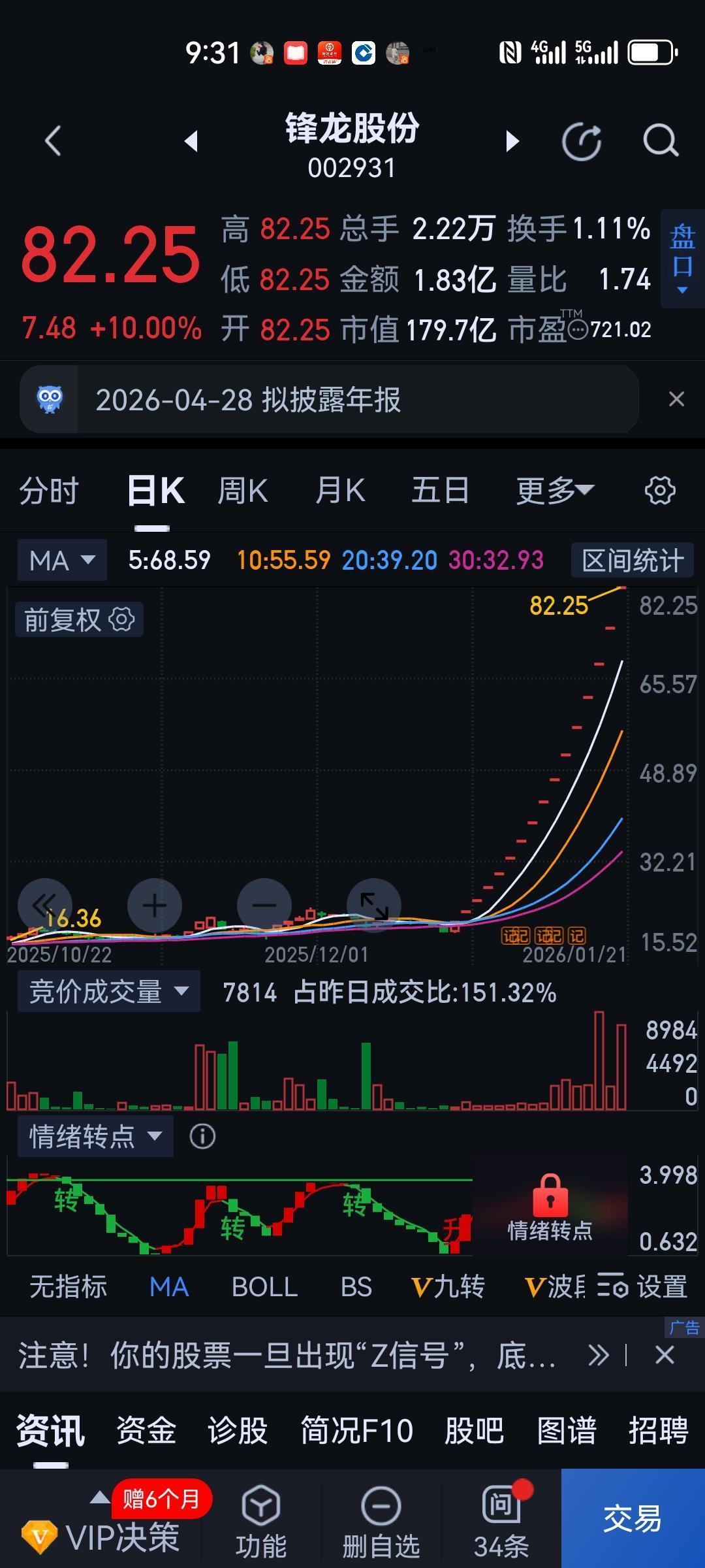 发发牢骚,还有天理吗?还有王法吗?还有世道吗?25.12.17,天天涨停板,现在都干到了82.25,还是没有一点泄气的样子,看看这换手率才1.11%,就是个优必选入股,就能把股价炒到天上去,大家可别忘了,优必选现在的市盈率是—66.29倍…… 锋龙股份市盈率629.39倍 现在就是瞎🐔巴乱炒……