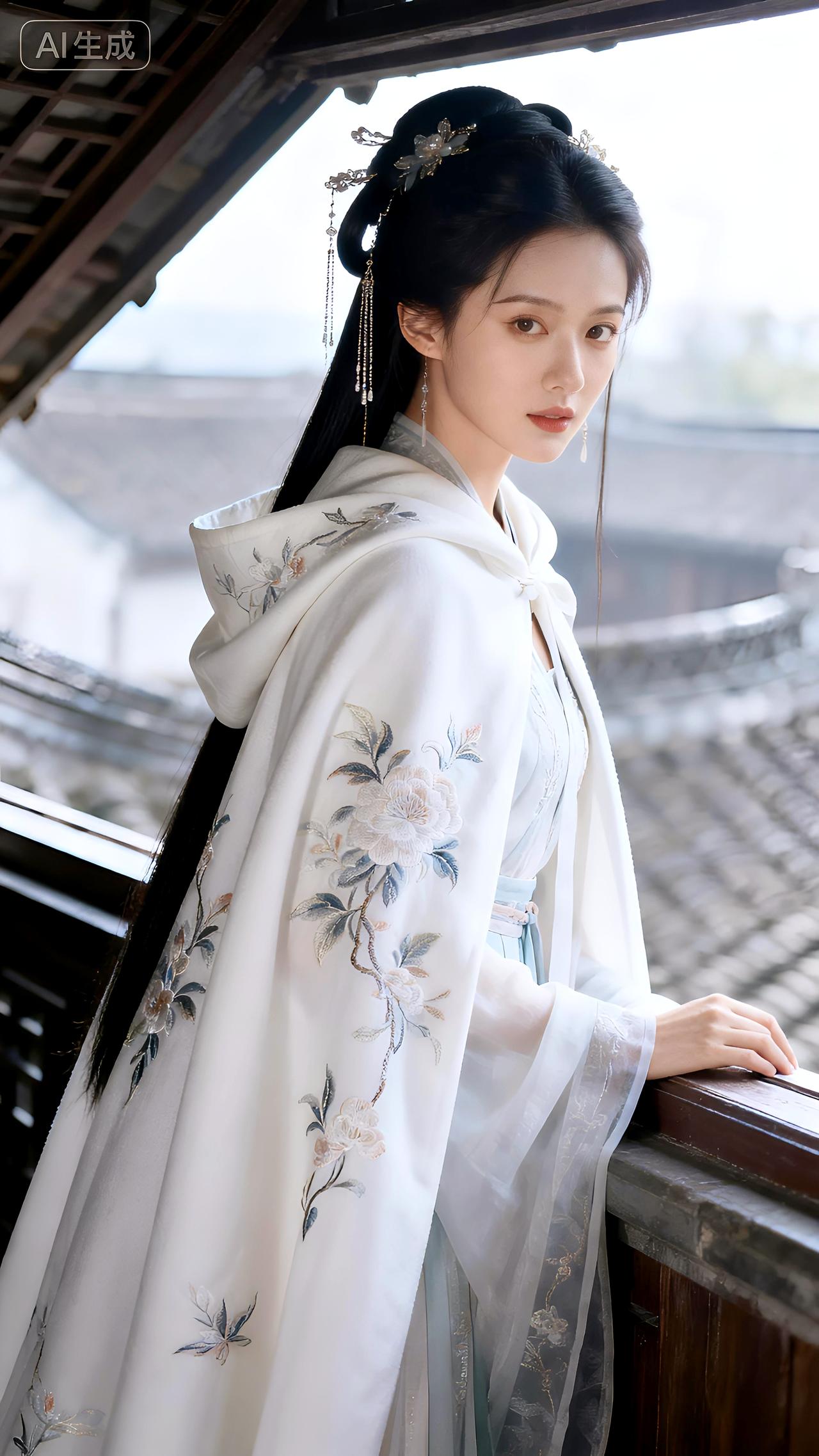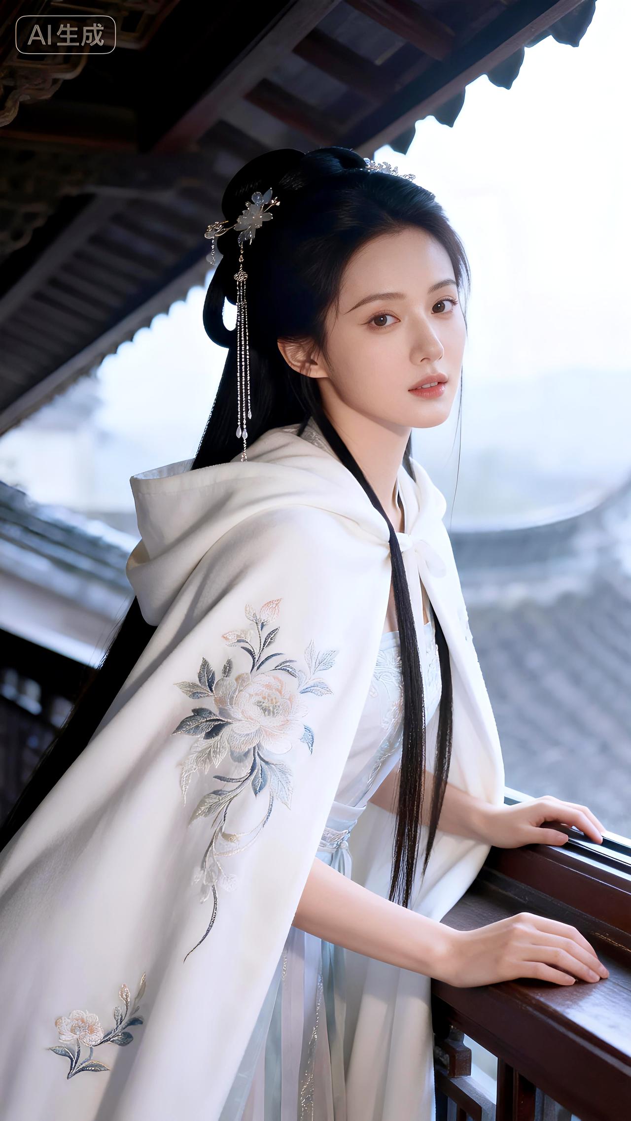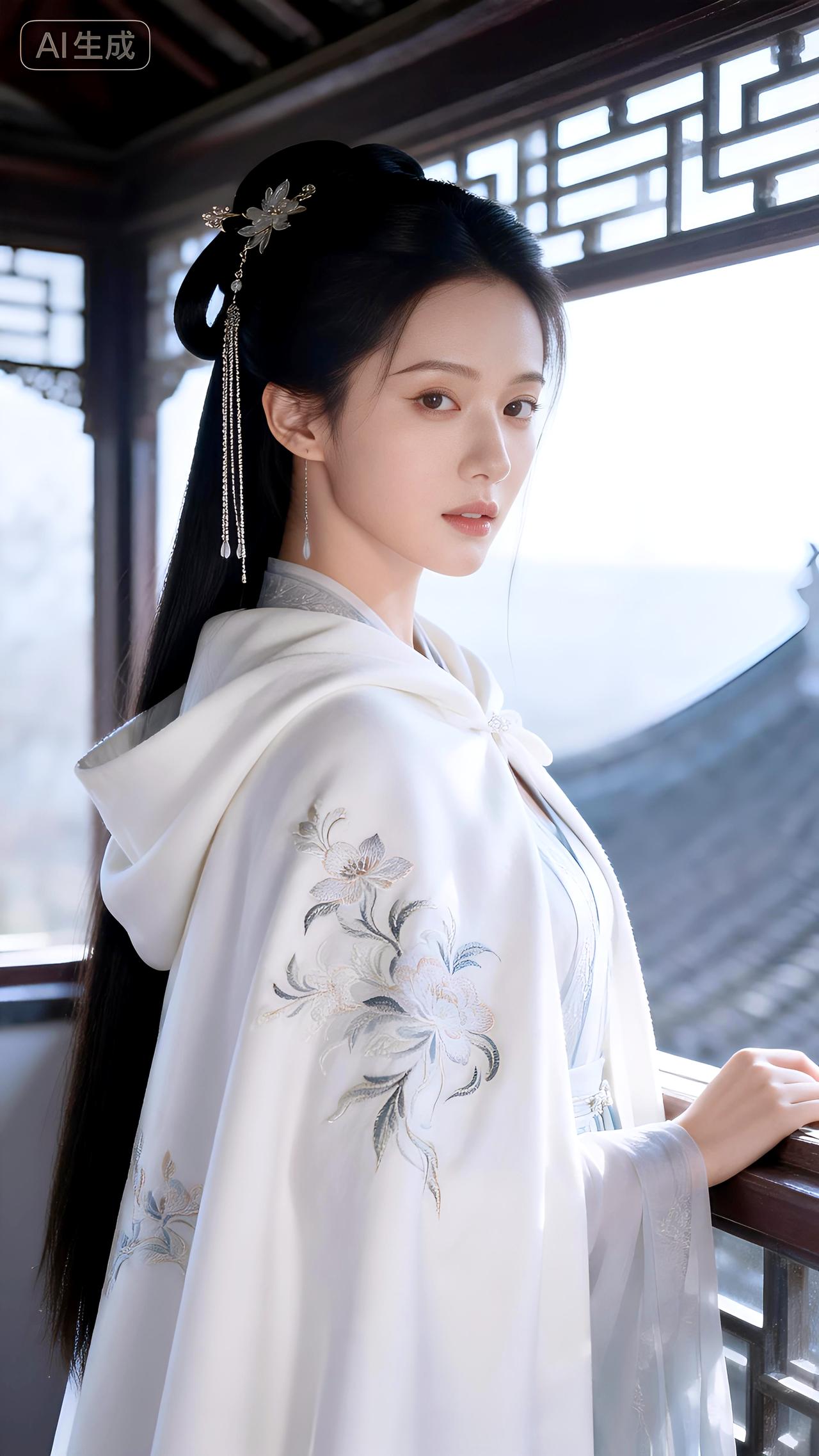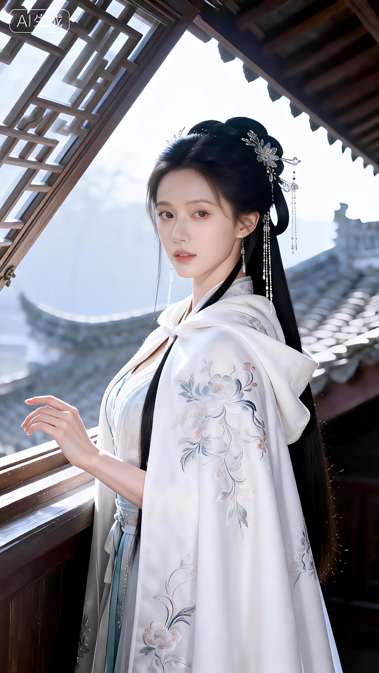 倚阁听雪玉絮扬,琼芳漫缀素罗裳。豆包 壁纸 写真