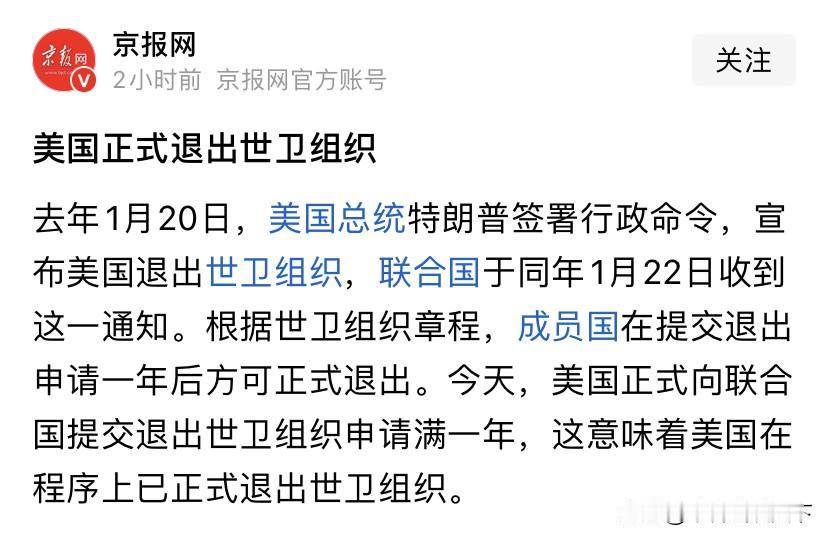 我倒觉得美国这个决定无可厚非[灵光一闪] 美国花这么多会员费,但世卫组织给美国带来了什么?在疫情大流行期间,美国死了那么多的人,世卫组织也没帮上忙,美国政府和老百姓对他不满很正常。 不仅对美国,对全世界来说,世卫组织也不称职,根本也没有给包括我们在内的全球一个交代。 因为全世界因此死亡和感染的人数以亿计,世卫组织查一个病毒的来源,查了这么多年都没有一个结论,那这个组织有什么用?是不是浪费全球纳税人的钱啊? 是不是我们也应该考虑退出这个组织?