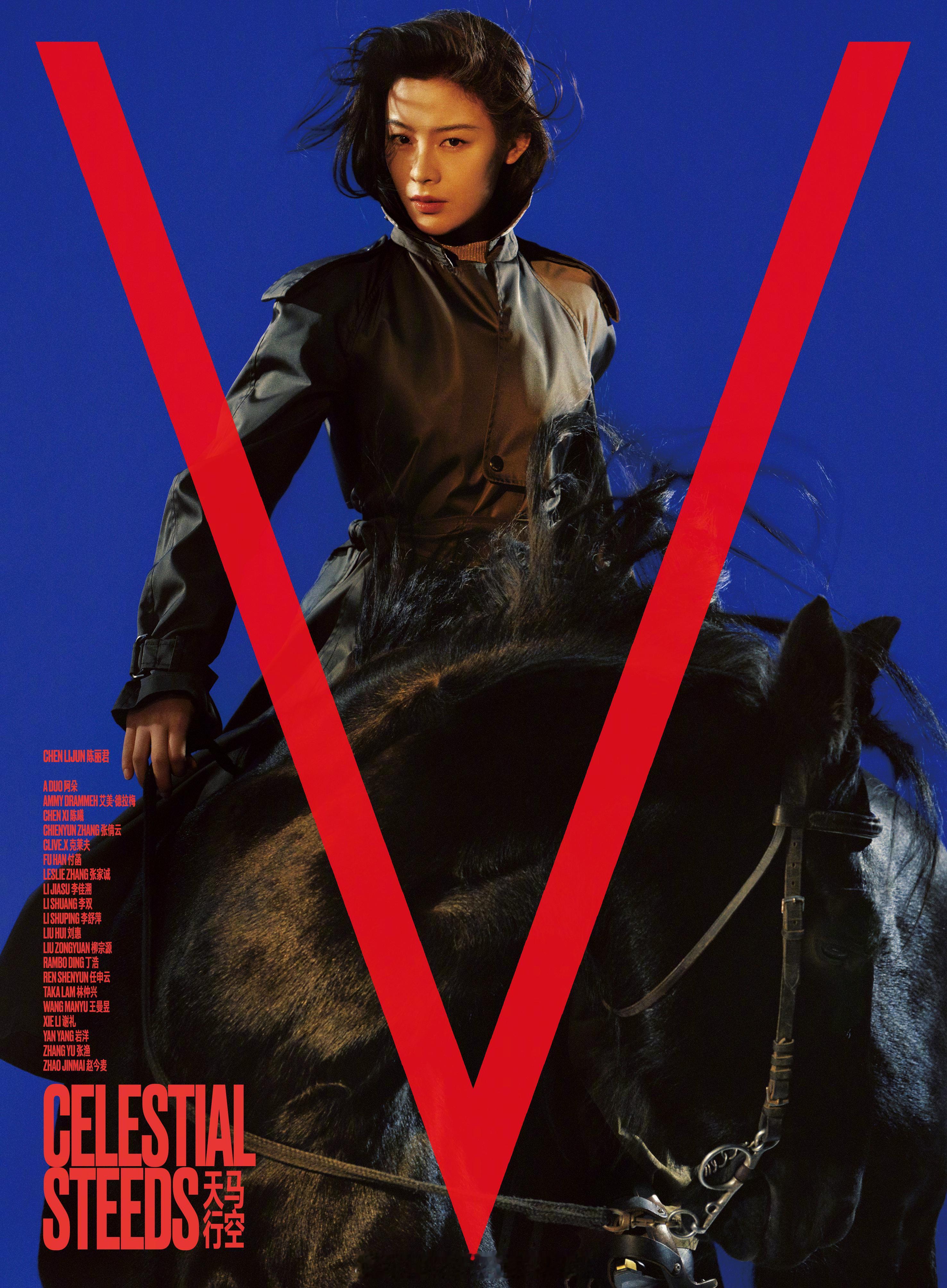 陈丽君登上V中文版2月刊封面,身骑黑色骏马、帅气登场~摄影/柳宗源陈丽君V中文