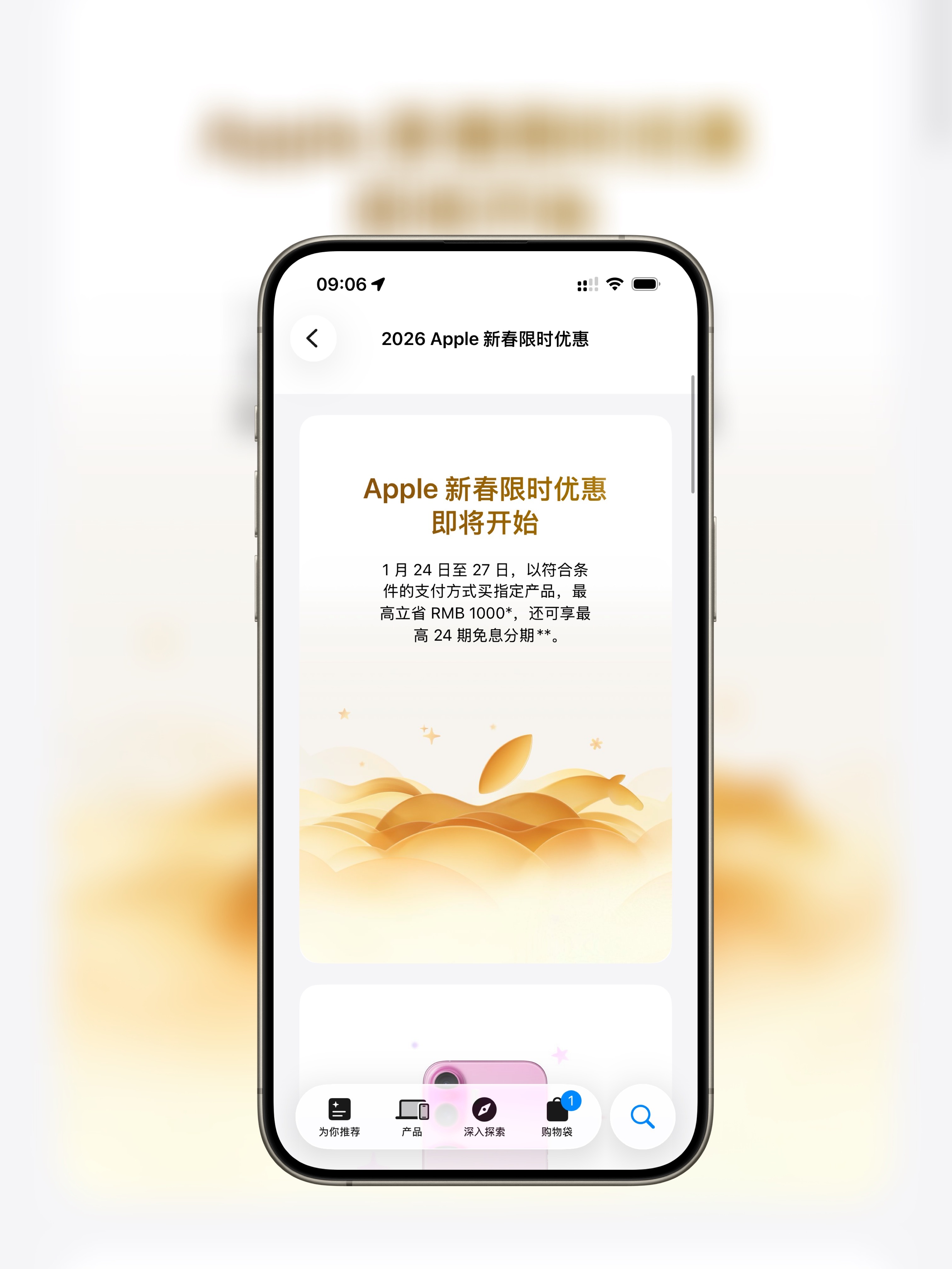 苹果官网新春限时优惠即将开启,时间1月24日到1月27日,购买产