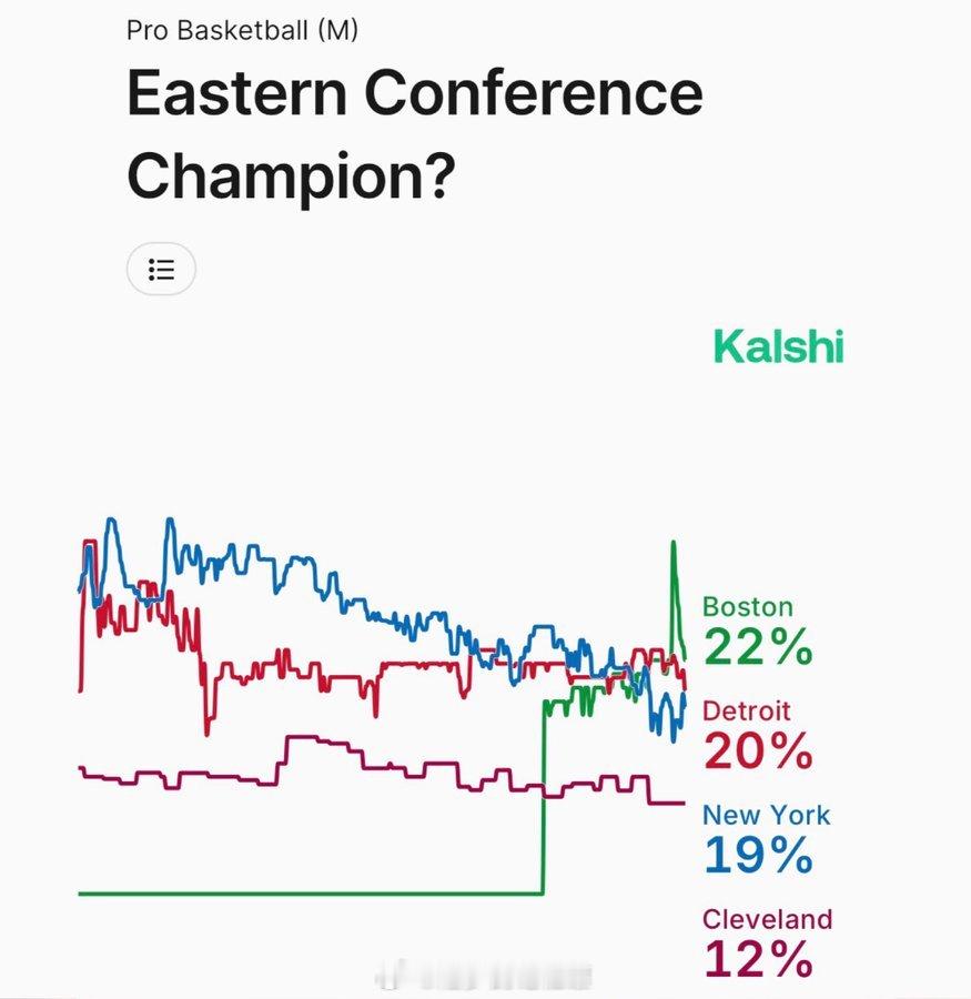 据Kalshi显示,即便缺少塔图姆,波士顿凯尔特人目前仍是东部冠军的最大热门。