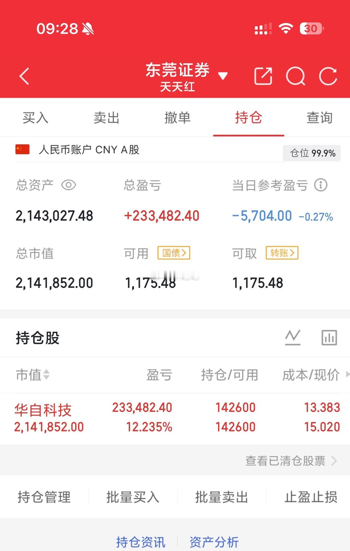 100w本金记录到300w(第179天)今日持仓票:华自kj今日总资产:215w