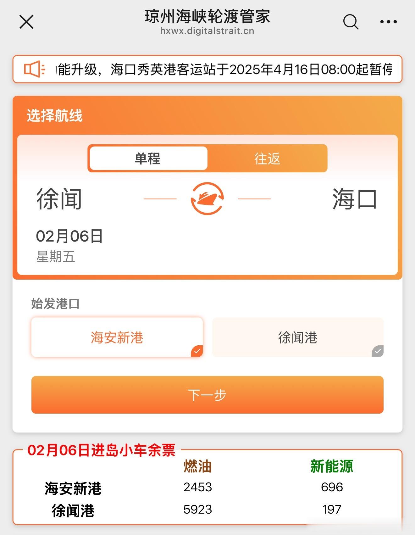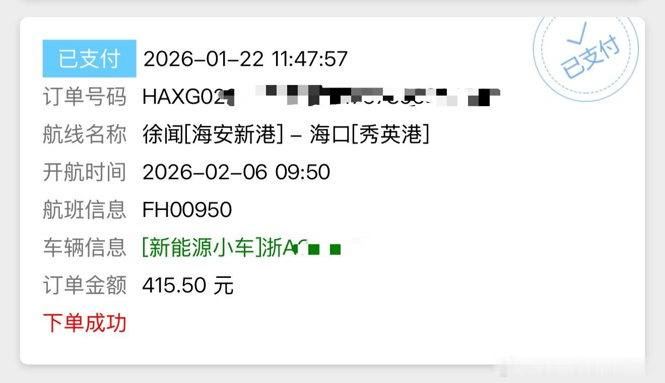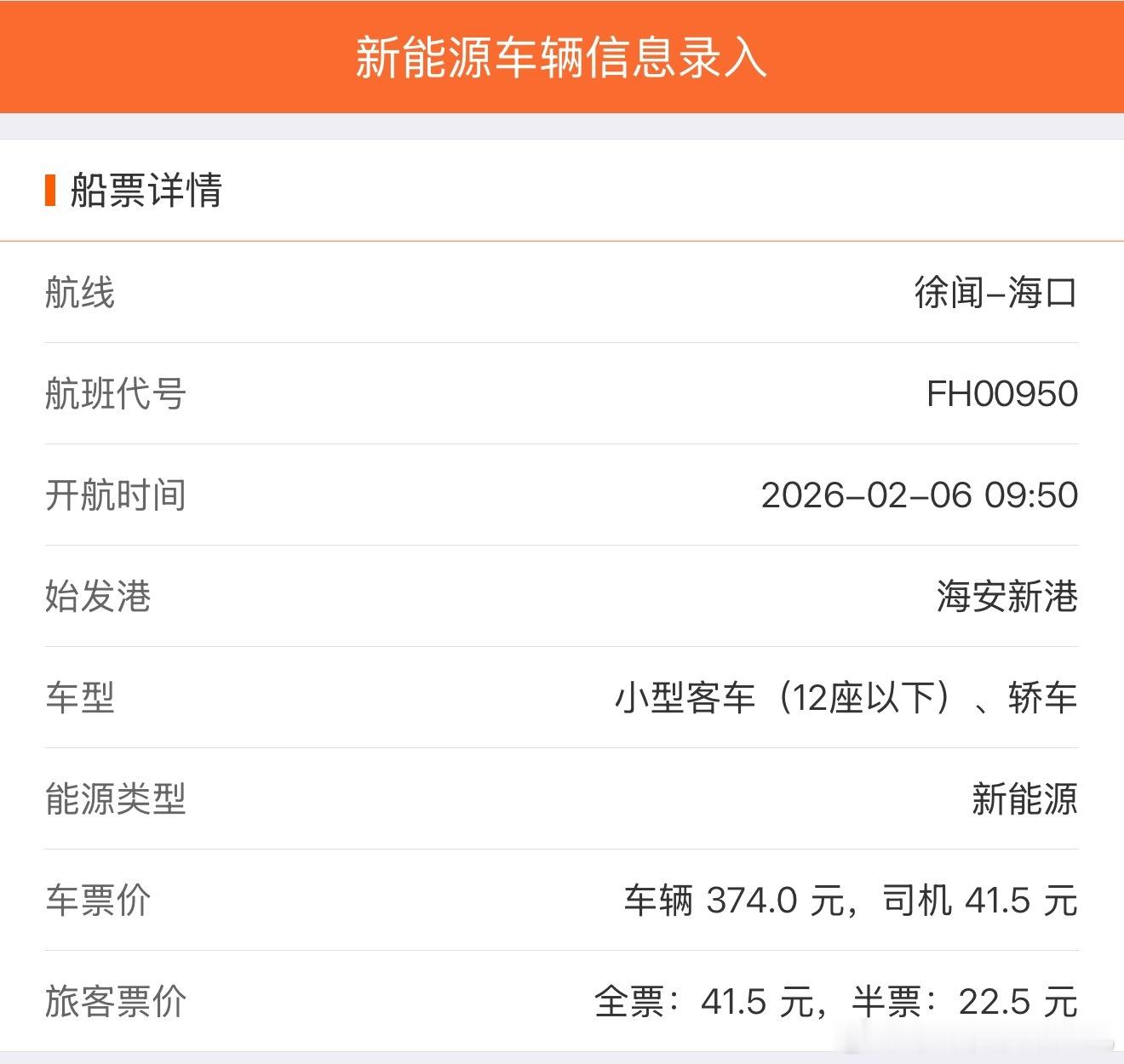 刚刚买了下个月6号自驾轮渡过琼州海峡去海南的船票~(具体收费可以看图三) 1️⃣ 新能源汽车过海峡前往海南只能选择“海安新港”!2️⃣ 新能源汽车的票是少于燃油车的,因为存在自燃风险,新能源车实行人车分离的运送策略(听说运送过程中自燃了,会把自燃的车推到海里?)。司机和车辆不在同一艘船🚢 后续给大家拍一下3️⃣和坐飞机一样,需要提前两个小时到码头进港。吐槽一下“琼州海峡轮渡管家”这个购票平台,交互体验、设计界面还停留在古早的时代
