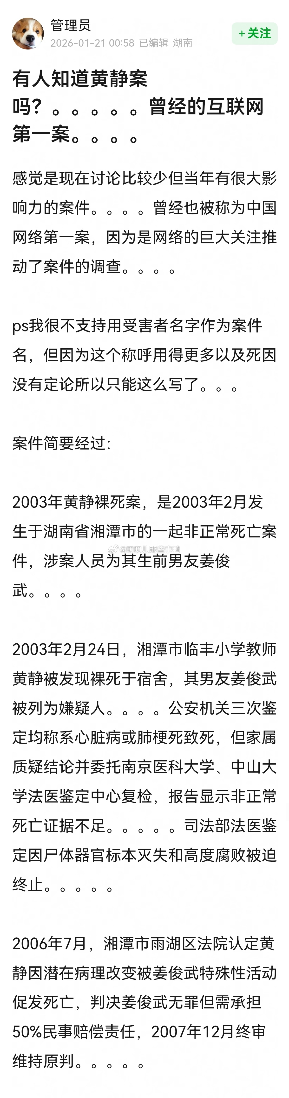 看这个帖子,第一次知道这个案子→有人知道黄静案吗?曾经的互联网第一案~