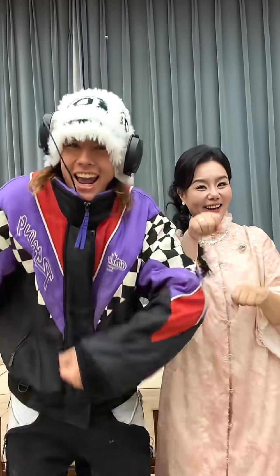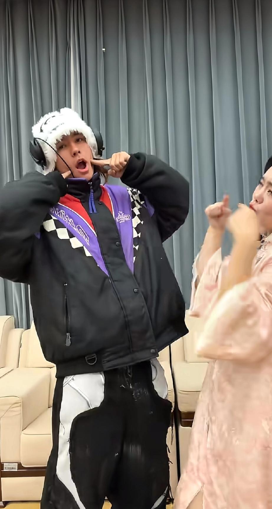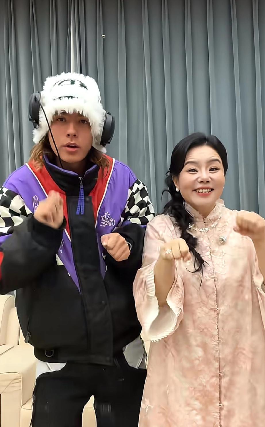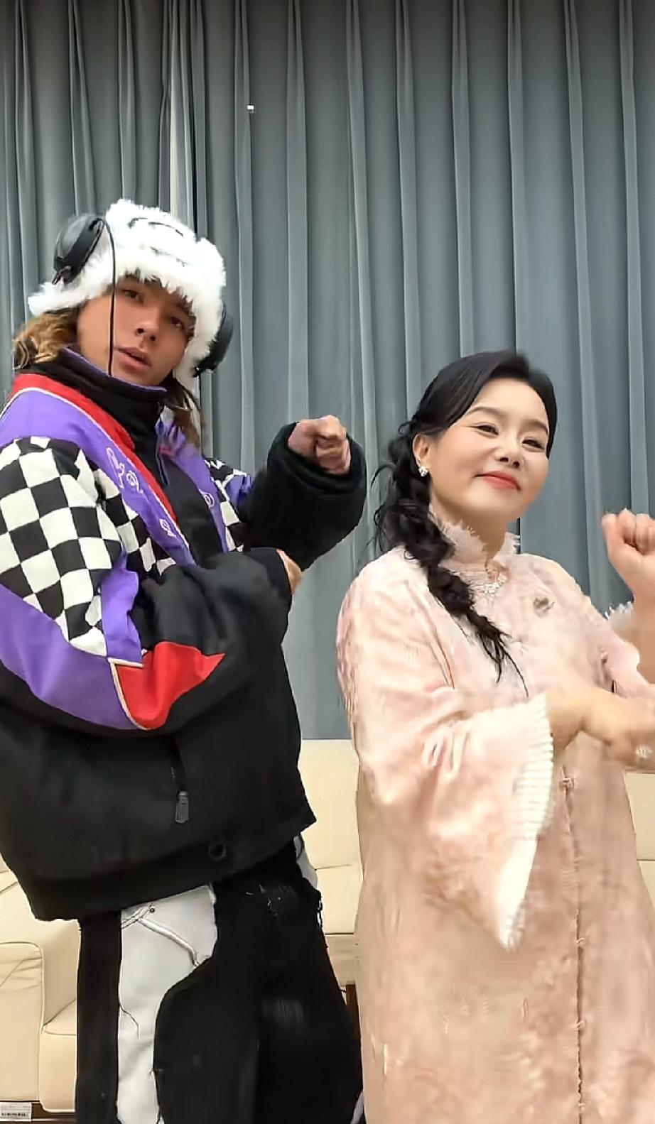 龚琳娜儿子太帅了,她和前夫老锣生的小儿子颜值颇高,最近她儿子雅酷回国看她,母子俩在家连看了三天电视,现在雅酷又陪着龚琳娜出来工作,母子俩还一起跳手势舞。 雅酷今年应该18岁了,小时候五官还没这么立体,现在是又高又帅,鼻子高挺,颜值完全不输男明星,打扮得也是很酷,感觉性格很像妈妈龚琳娜,很活泼也很会跳舞。