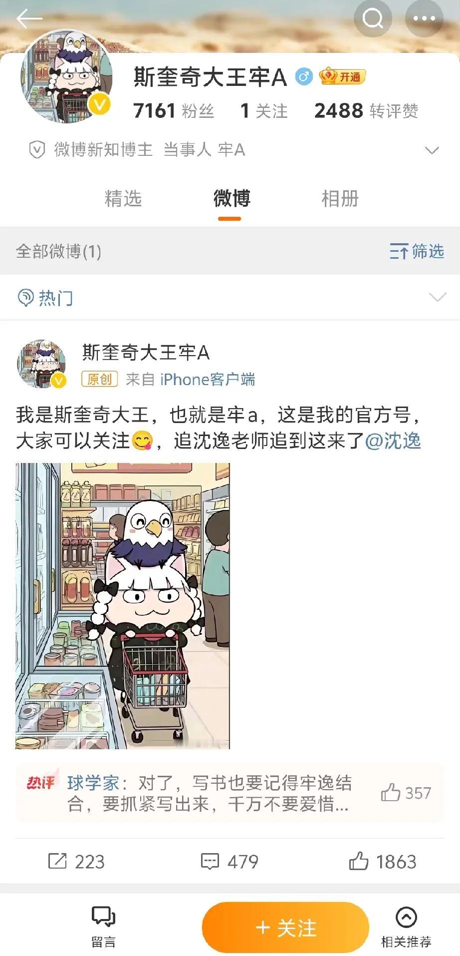 牢A在WB上开号了,首条就@了沈逸教授,还有干活输出吗?