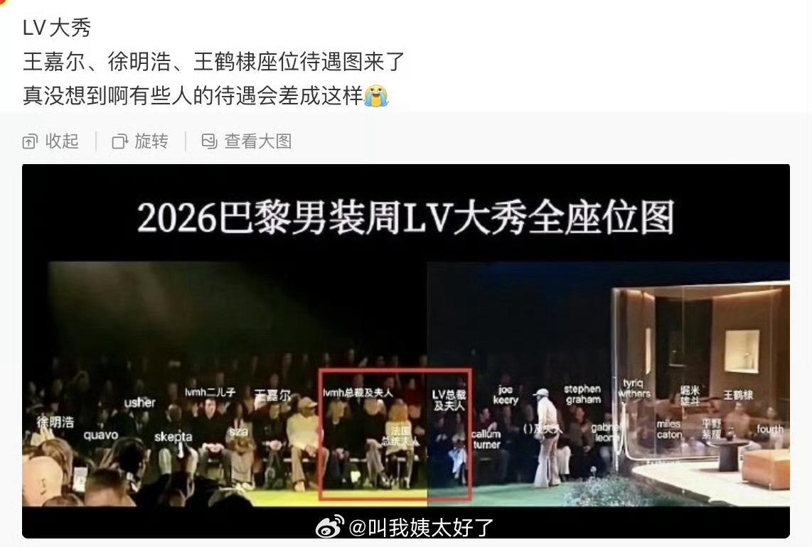看完Lv大秀的座位,感觉粉丝吹的官博把王鹤棣放在首位好搞笑