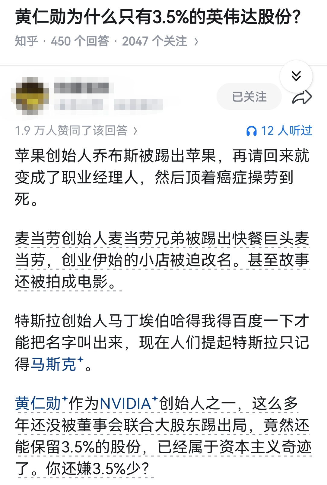 黄仁勋为什么只有3.5%的英伟达股份?