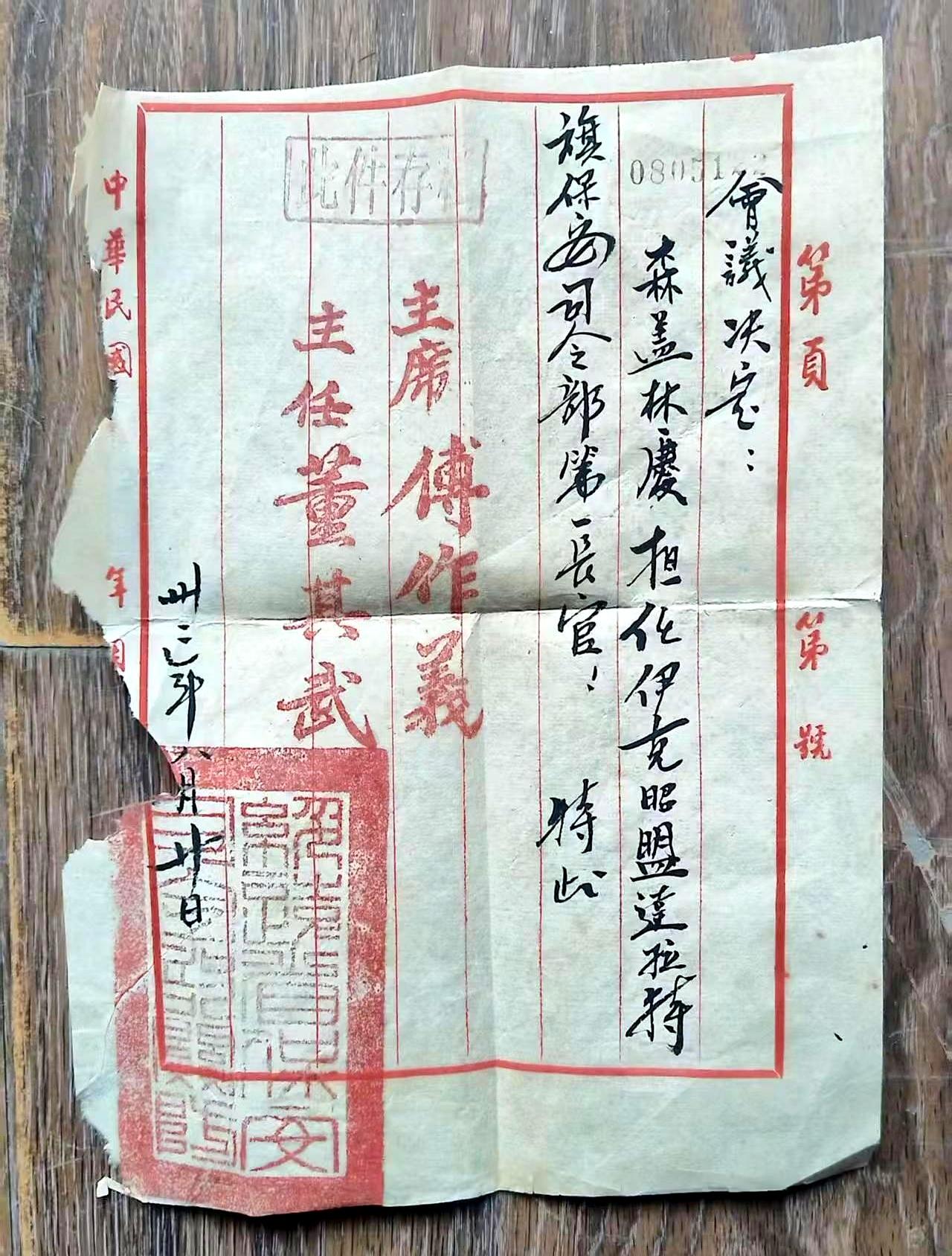 刚看到一份泛黄的任命文件,心里突然有点发堵。 主角是森盖林庆,一位被称为“老爷爷”的人物。 现在的年轻人估计听都没听过,但在那个年代的内蒙草原,这名字分量可不轻。 真正让我盯着看了半天的是落款:傅作义、董其武。 这两个名字压在纸上,那就不止是任命了,那是沉甸甸的历史转折。 绥远那会儿局势多复杂? 能让这两位联名下文,森盖林庆这位置坐得稳不稳,关系到的可是人心向背。 现在的职场,升个职加个薪,还得搞得像宫斗剧一样,全是算计。 看看人家当年,大笔一挥,定的是江山安稳,用的是民族大义。 这种老文件流出来一张少一张,上面没写多少字,但每一个笔画里藏着的,都是那个大时代里,让人喘不过气来的博弈与抉择。
