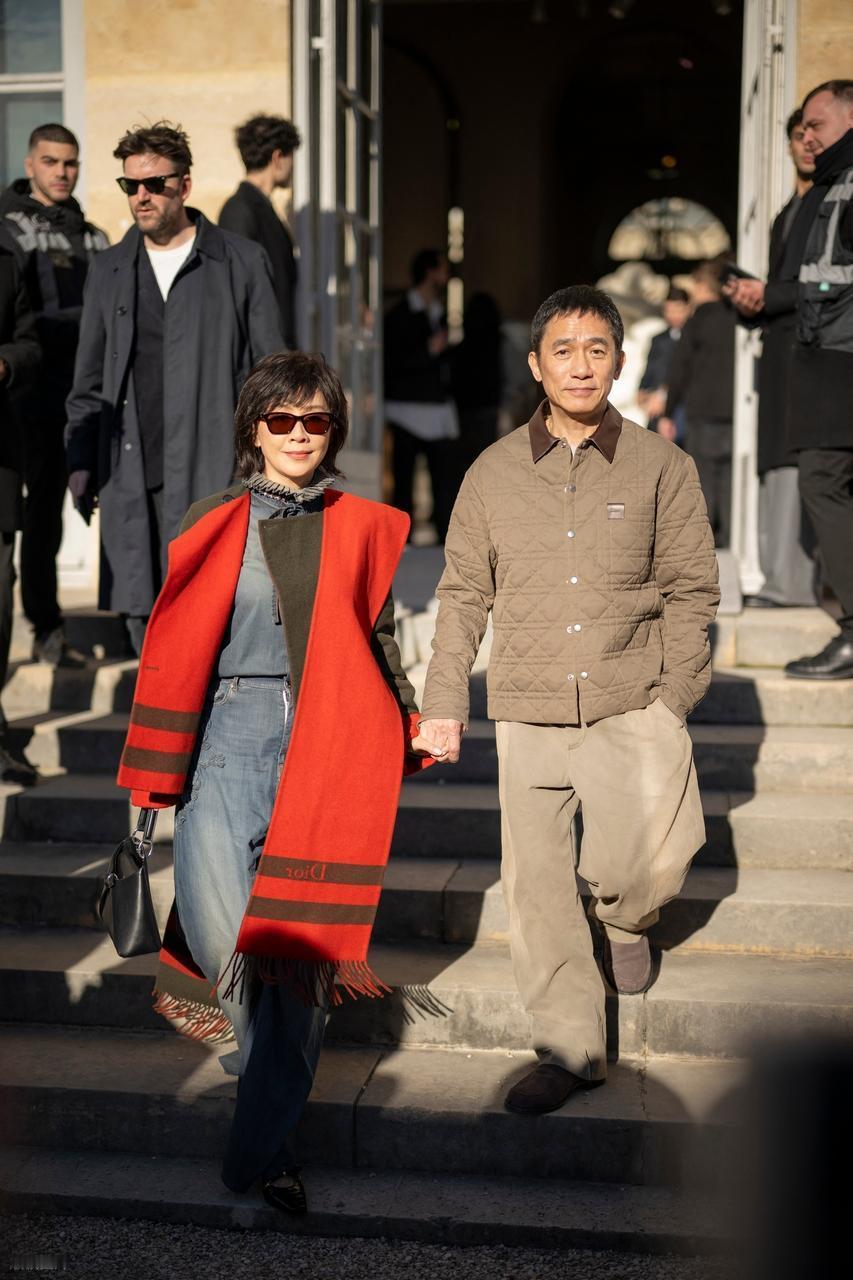 最近刘嘉玲和梁朝伟一起出席时装周,两位手牵手现身非常恩爱,看起来也特别的般配。 刘嘉玲这回走复古风路线,整个人显得好年轻,确实是太美了。 她里面穿蓝色牛仔装,下身搭配做旧风格的牛仔裤,外面套着拼色风格的外套,气质超好。 刘嘉玲的身段是极为苗条的,这次穿的衣服版型很好,让她展现出了满满的精致感。 她留着清新的短发,还戴着黑色的墨镜,看上去好拉风。 梁朝伟用灰色棉衣搭配灰色裤子,脚踩灰色皮鞋,整个人显得很有涵养。