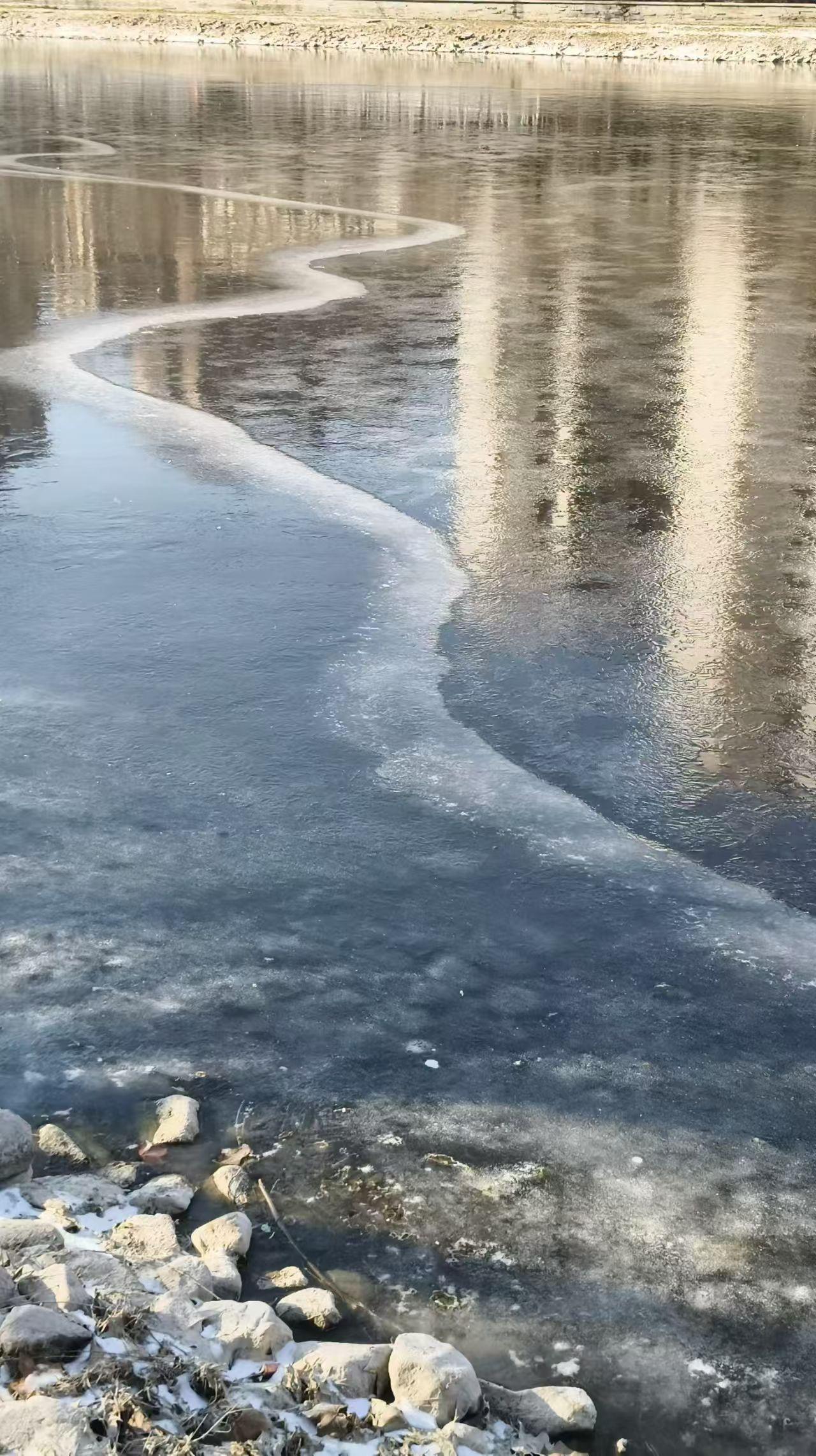 (虞河,结冰了) 天冷, 虞河, 终于结冰了。 站在木桥上, 望着阳光下的河面, 泛着层迷人的银光。 这河, 有着冬日的特色美。 这美, 只留给欣赏它的人。 天暖后, 冰化了, 这河, 又恢复了波光粼粼…… 2026年1月22日于潍坊