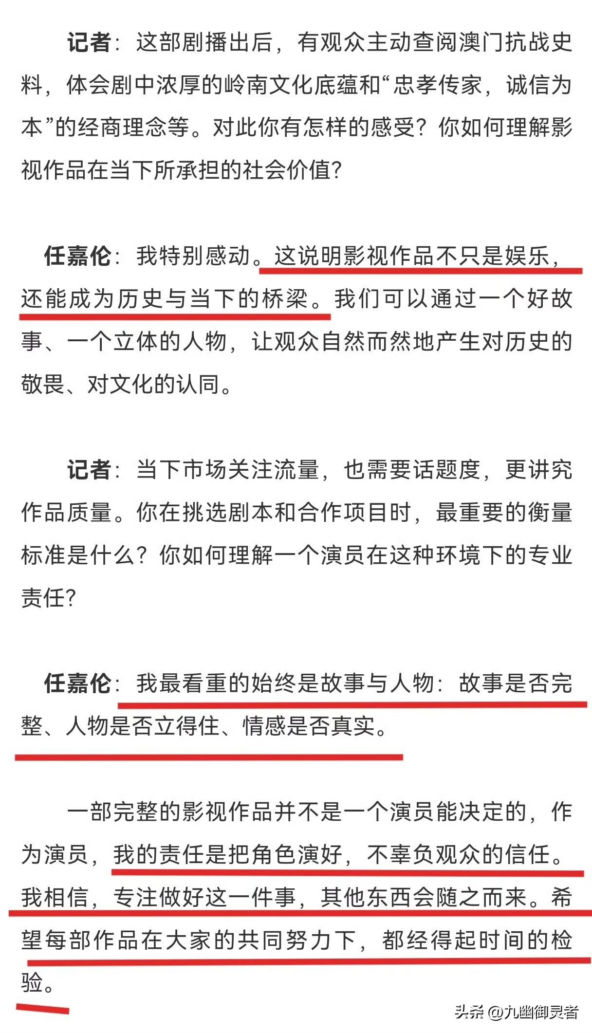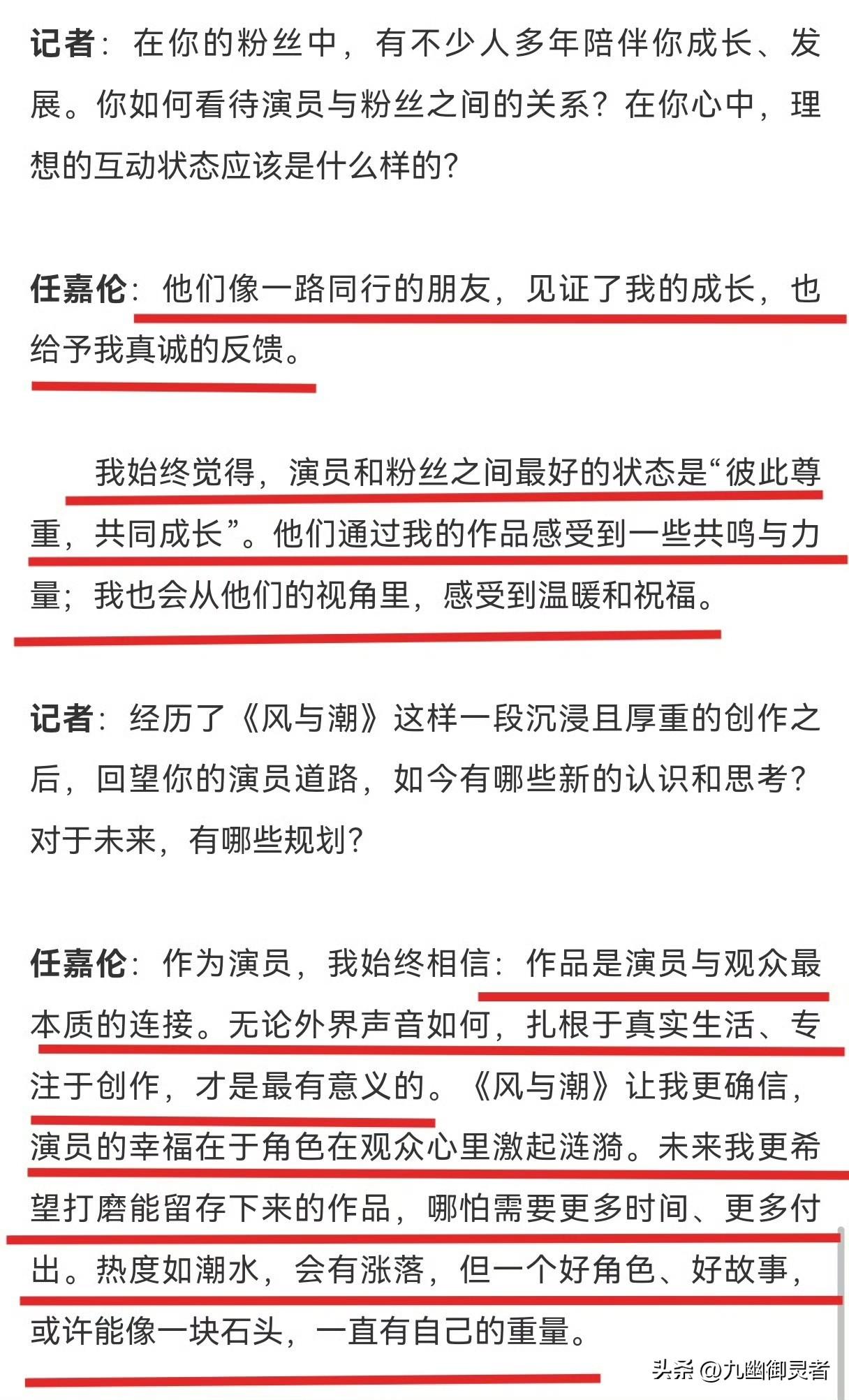 任嘉伦接受人民日报专访📰📰📰 他逻辑清晰、表达精准 对角色的理解也是兼具深度与温度职业方向也格外的明确 不愧是我们优秀的实力派演员[赞] 更让人动容的是 采访最后还提到了粉丝 寥寥数语间满满的真诚 这样的任嘉伦 喜欢他真的太值得了[赞][赞][赞] 也满心期待嘉伦 未来能带来更多精品佳作哦[比心][比心] 任嘉伦 任嘉伦最新动态