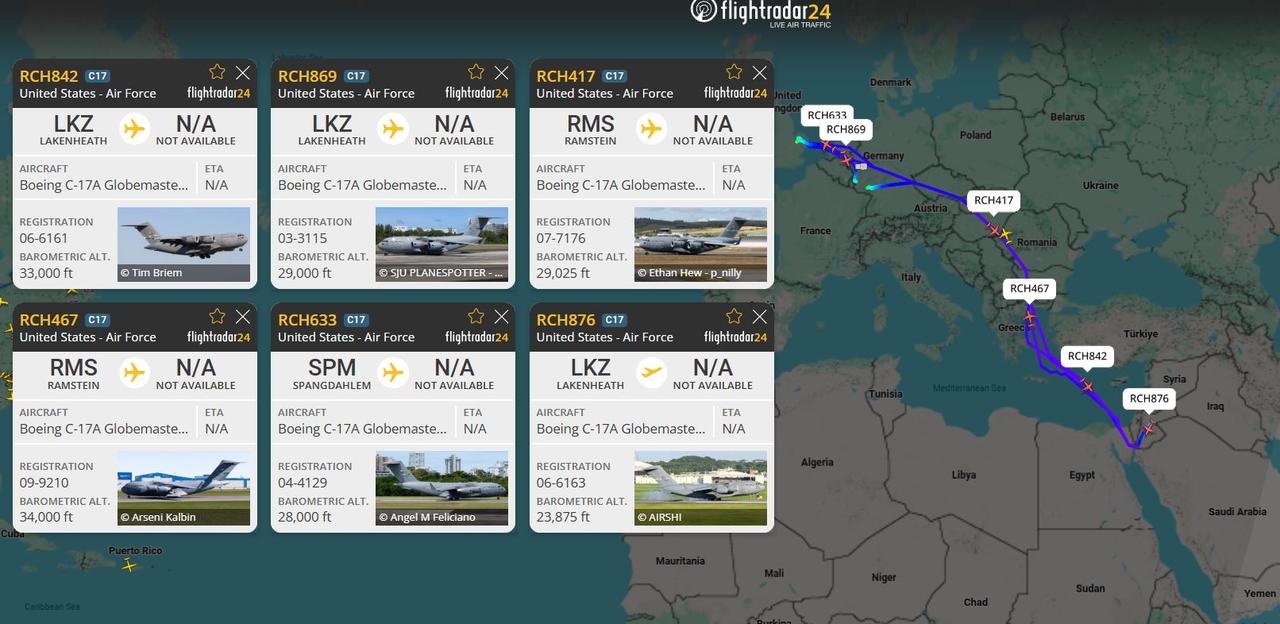 【8架C17飞往约旦,美国军事准备进入倒计时】 近日有开源情报显示,美国空军8架C17依次从英国德国起飞,飞往约旦境内。这些运输机的机队规模以及飞行轨迹,和去年6月美国进行对伊军事准备时,往约旦增派部署反导部队的轨迹十分接近,所以我们可以猜测美国又在往约旦增派反导力量了。 往约旦布防反导的理由很简单,在这里进行末端拦截,可以降低伊朗导弹对以色列本土的损害。 弹道导弹这玩意难以拦截,一个重要因素就是哪怕成功在末端拦截,导弹残骸也会坠落目标区域附近造成损伤。 去年持续12天的以伊冲突,以色列拦截的伊朗导弹不在少数,但伊朗仍然对以色列国土造成了不小打击,迫使特拉维夫选择停火。 但如果美国能在约旦上空拦截伊朗导弹,受到损失的只会是约旦。以色列高枕无忧,特朗普也就能下定打伊朗的军事决心。 所以从美军往约旦部署反导部队开始,对伊军事准备就已经进入倒计时