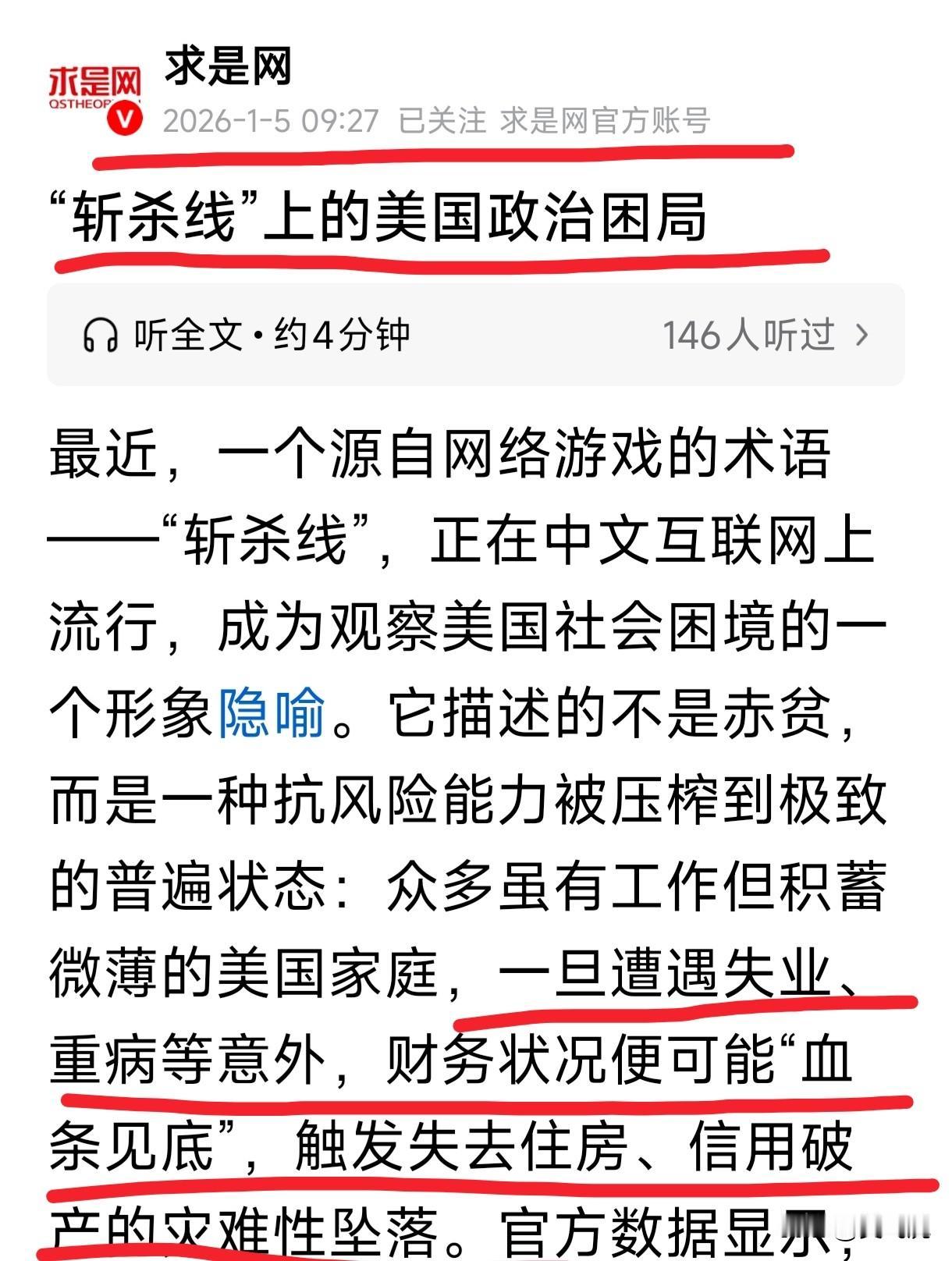 “美国斩杀线”太形象 这个词来的太及时了。 以为只是美国中产的经济困局 不料还是“美国的政治困局”[灵光一闪]