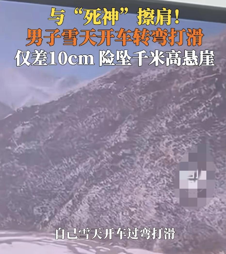 网友发视频称这是雨雪天开车打滑,险些掉进1000多米的悬崖,当时悬崖边上没有任何的护栏,车与悬崖边上仅有10厘米的宽度。很多网友看过视频都觉得隔着屏幕都捏了把汗。车主称当时在路上行驶的时候有暗冰,下坡时没有控制好车速。看到弯度,使劲踩刹车,打方向盘都没有任何反应,于是松开刹车才脱险,当时车上还有另外两个人,事发之后都觉得后怕。
